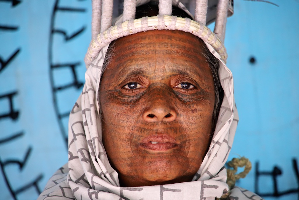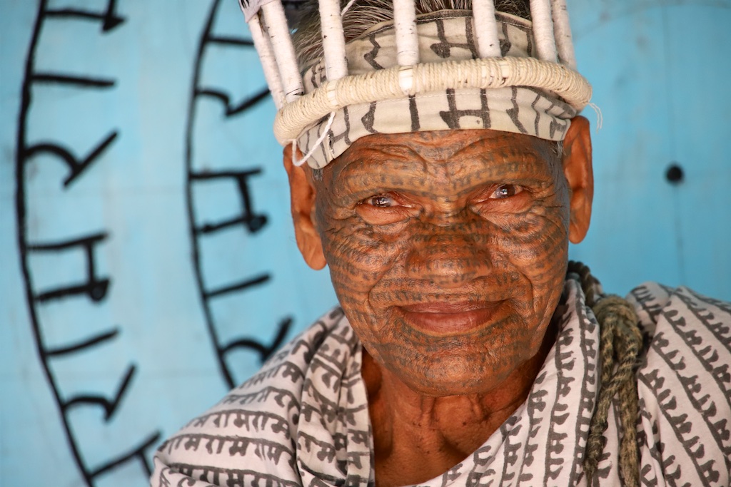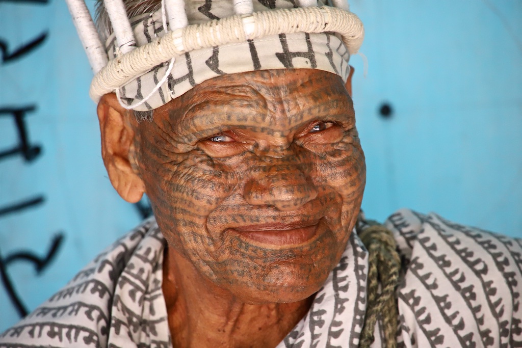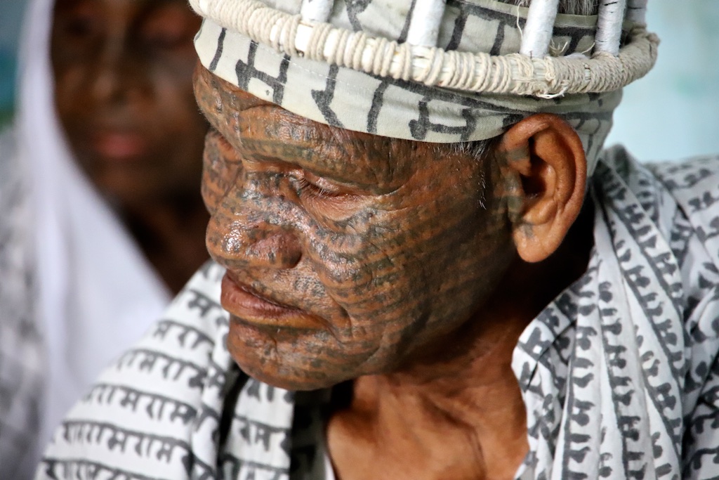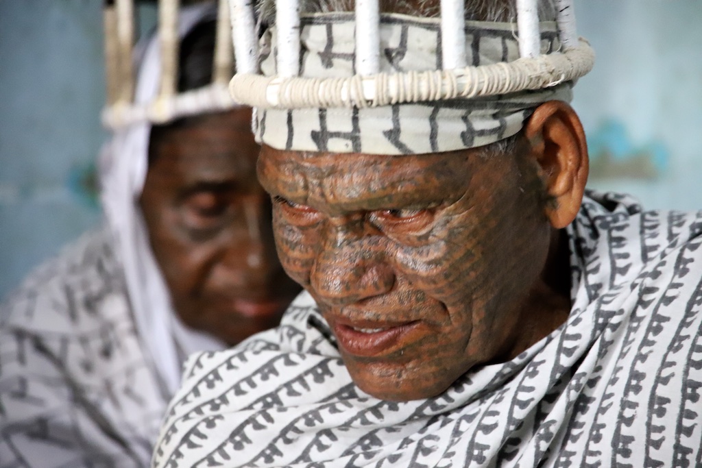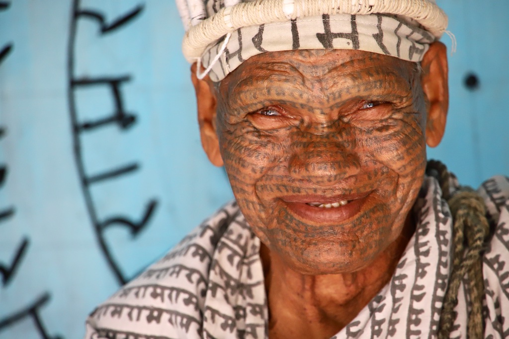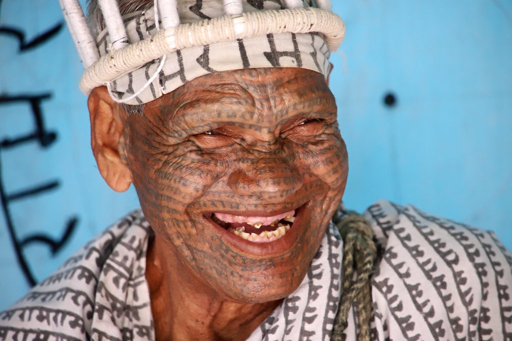 Le vieil homme dont les photos suivent a le corps complètement tatoué y compris les paupières …je compatis à la douleur qu’il a du supporter pour mener à bien cette opération. Cela n’empêche pas qu’il a un sourire absolument communicatif !!!