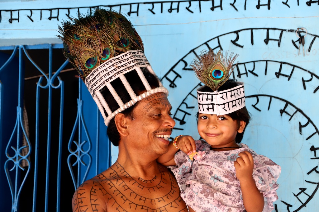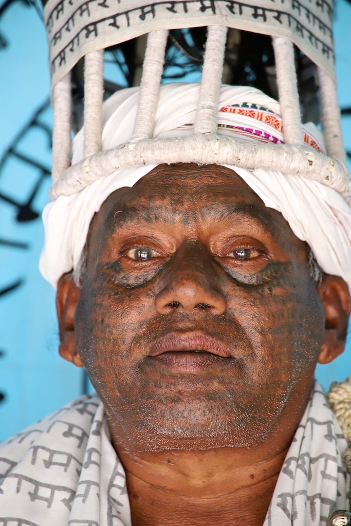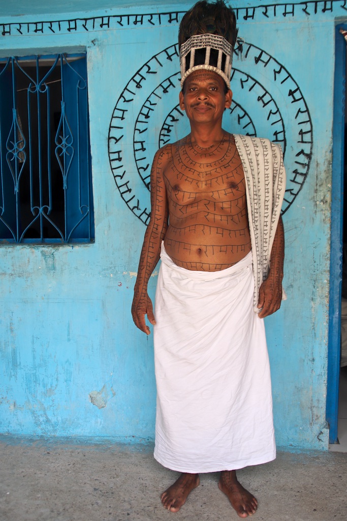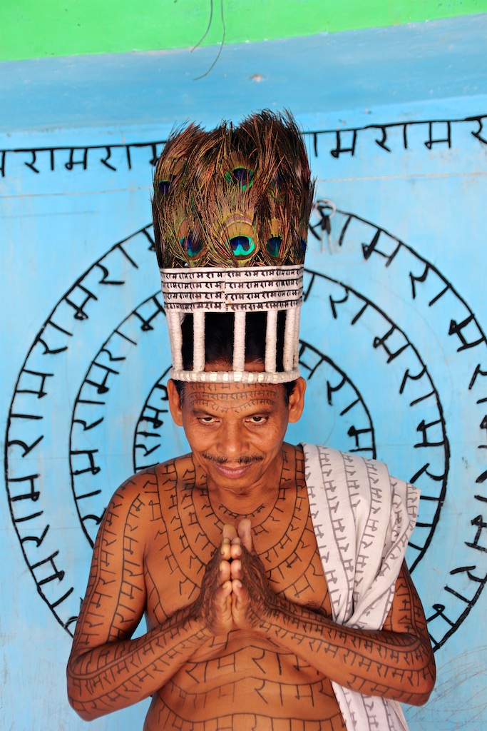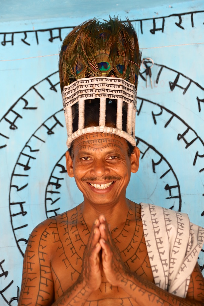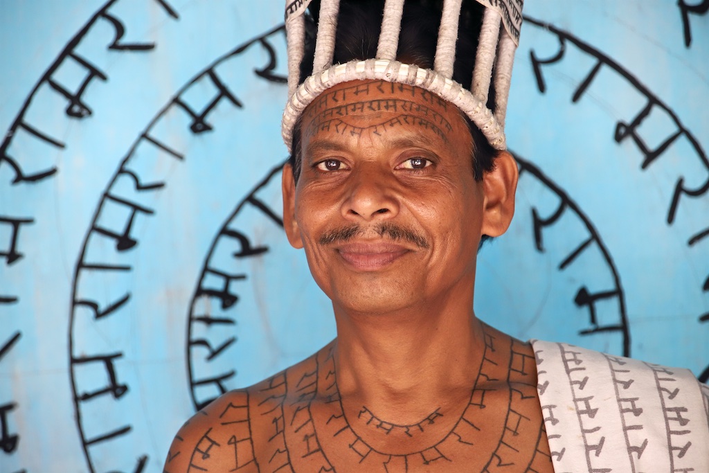 Le Ramnami Samaj du Chhattisgarh a trouvé une manière unique et pacifique de s’opposer au système des castes en Inde. Interdits d’entrer dans les temples, les membres de la communauté se tatouaient le corps entier, parfois même les paupières, du nom de « Nirgun Ram », en signe de défi pacifique aux restrictions qui leur étaient imposées.