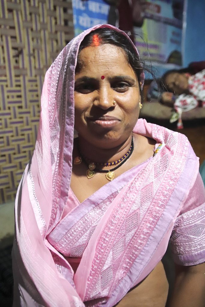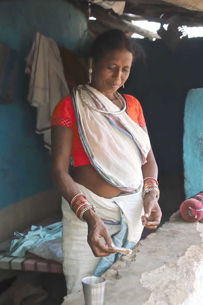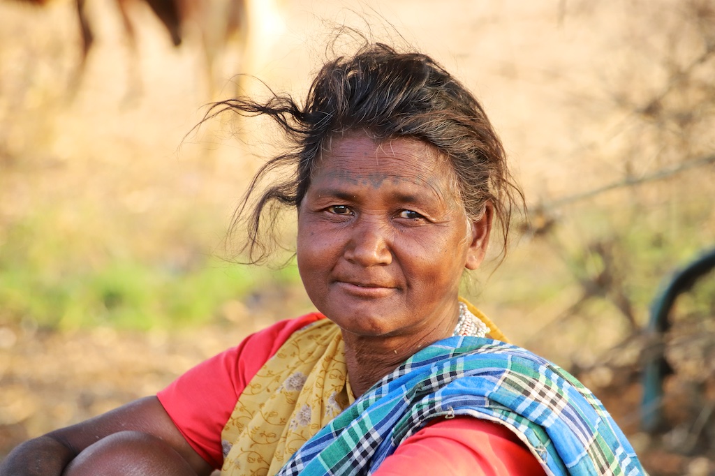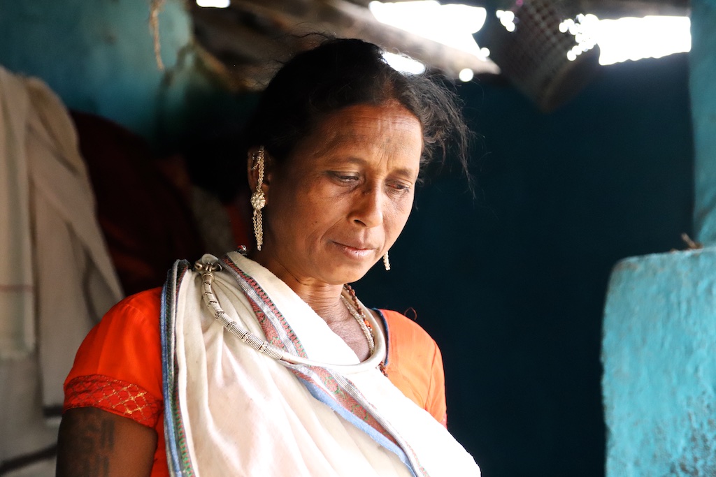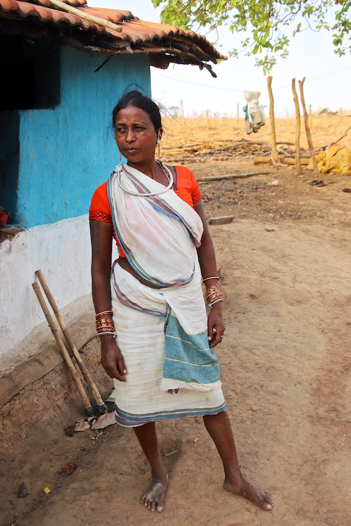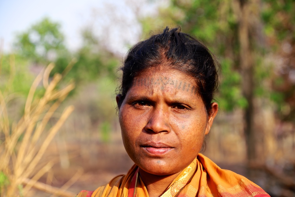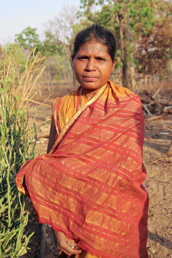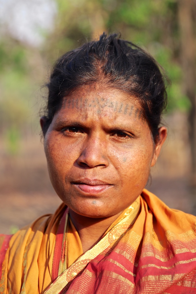 Cette femme n’est pas tatouée, elle est bien Baiga mais est originaire d’un autre village …