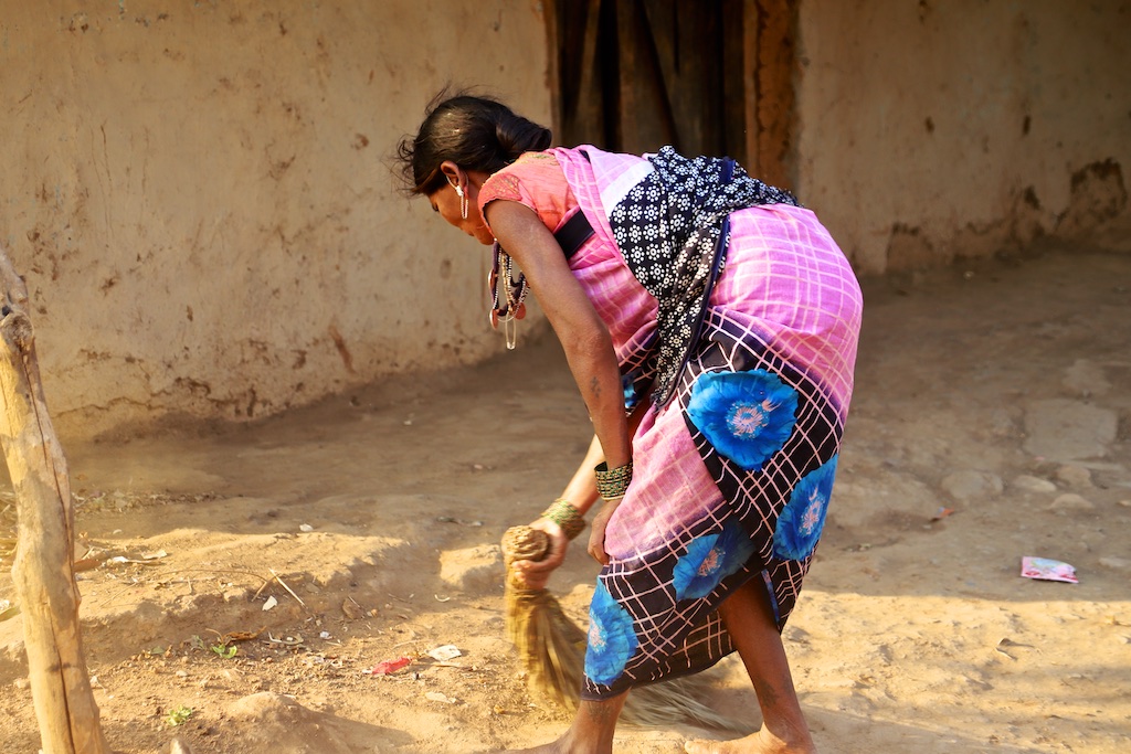 Les hommes et les femmes de la communauté Baiga participent à leurs occupations ensemble. Les femmes ne font pas de filage ni de tissage.
