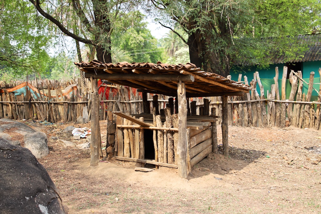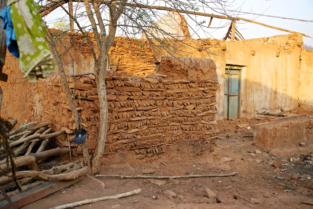 Ce village s’appelle Gudiapada. Les habitants utilisent de grandes plaques de pierre pour certains aspects de leur construction : toits, murets, poulailler…
