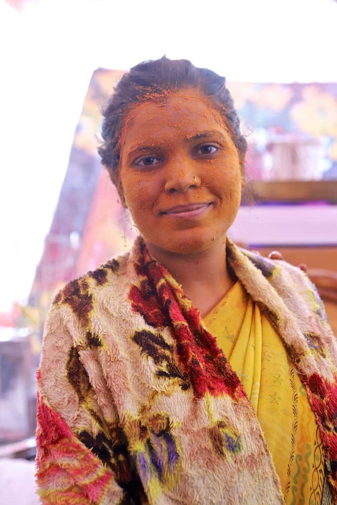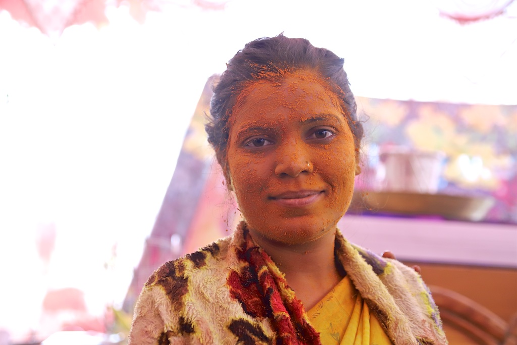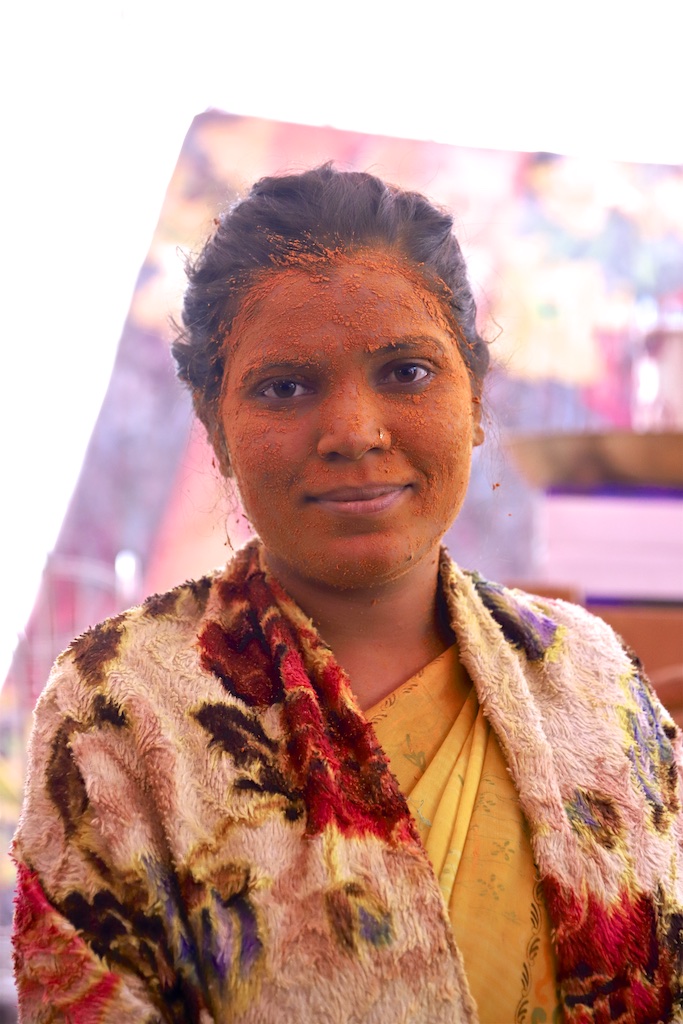 La deuxième mariée qui n’est pas encore officiellement mariée est celle qui est sur la photo qui précède …Son visage est enduit de curcuma qui lui donne cette couleur jaune et elle porte également un sari jaune. Le jaune en Inde est la couleur de la lumière et place cette belle jeune fille sous des auspices favorables …