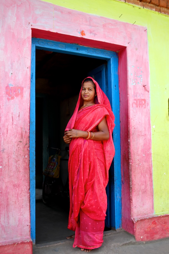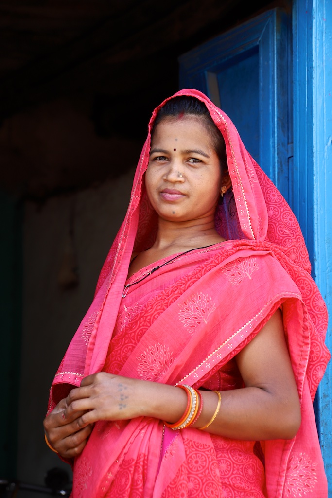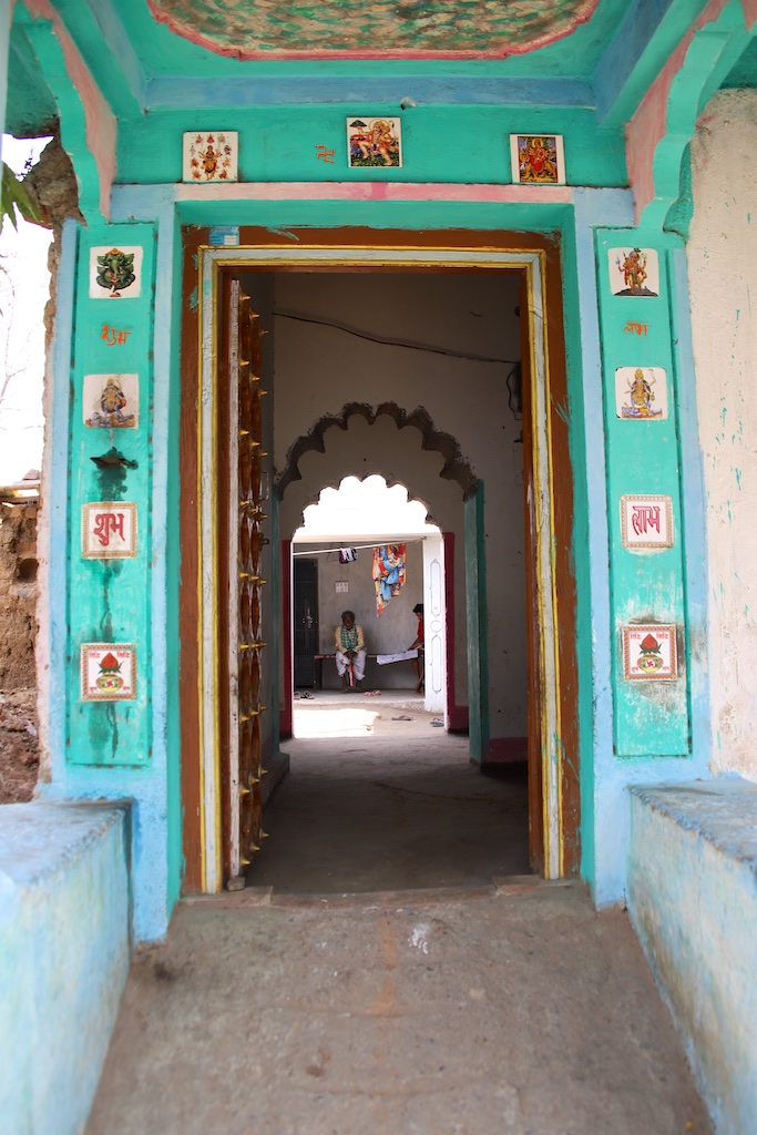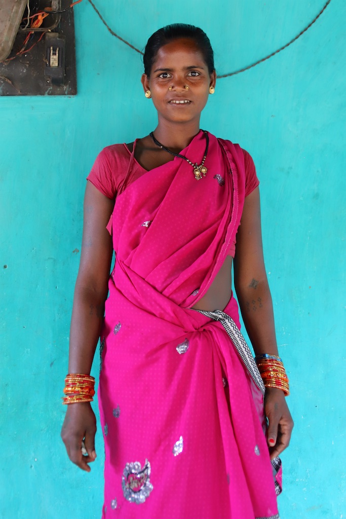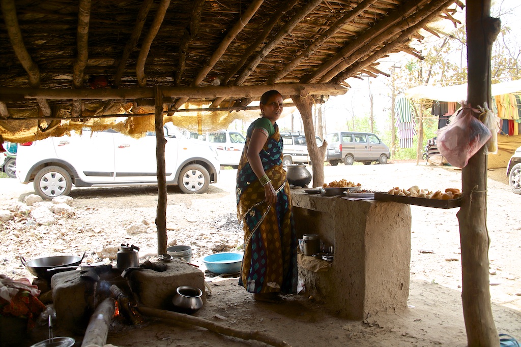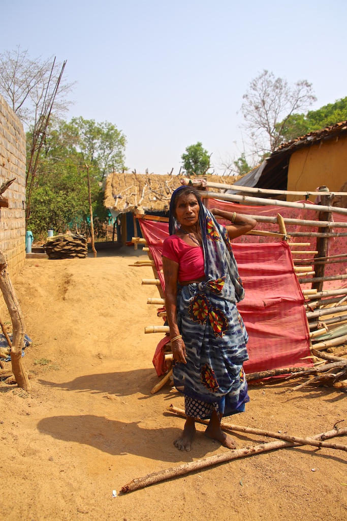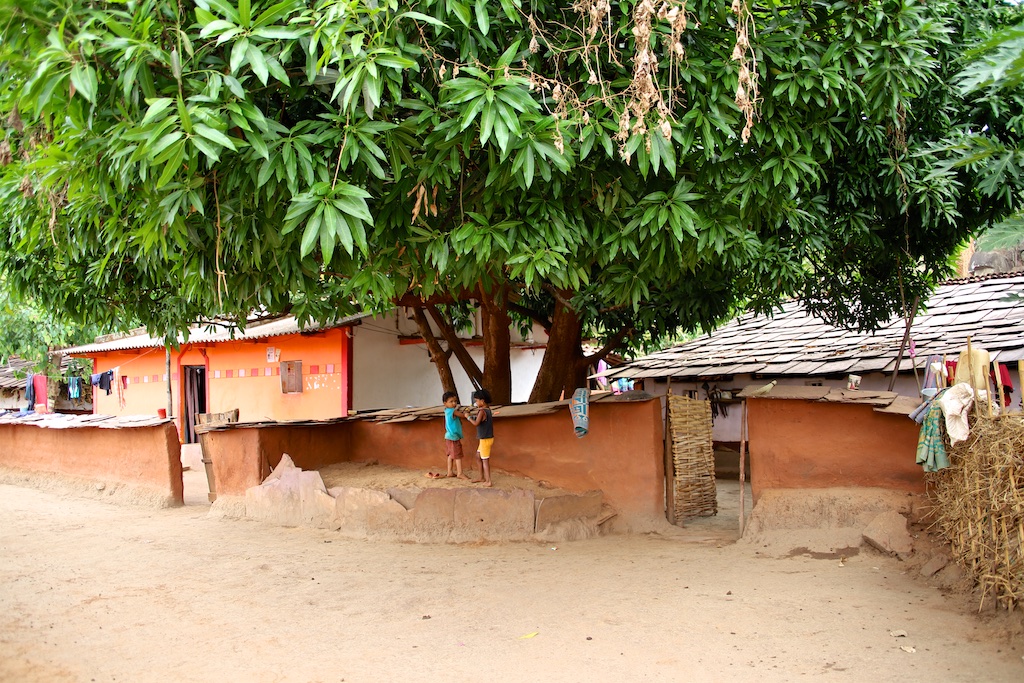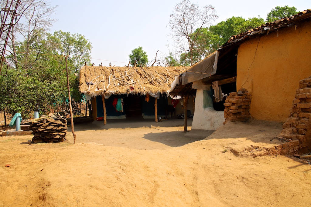 Nous partons ensuite sur la route et nous arrêtons pour visiter un tout petit village qui s’appelle Fusradi et qui est habité par les Duru Gond. Ce village est très pauvre : les toits sont recouverts de feuilles de plastique …elle même recouvertes d’herbes et de terre et maintenu par des branchages …