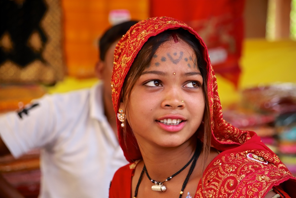Les filles sont tatouées à l’arrivée de la puberté avec une représentations du tulsi ou basilic, quatre pointes de flèche avec la forme d’une croix et l’ornement de pied connu sous le nom