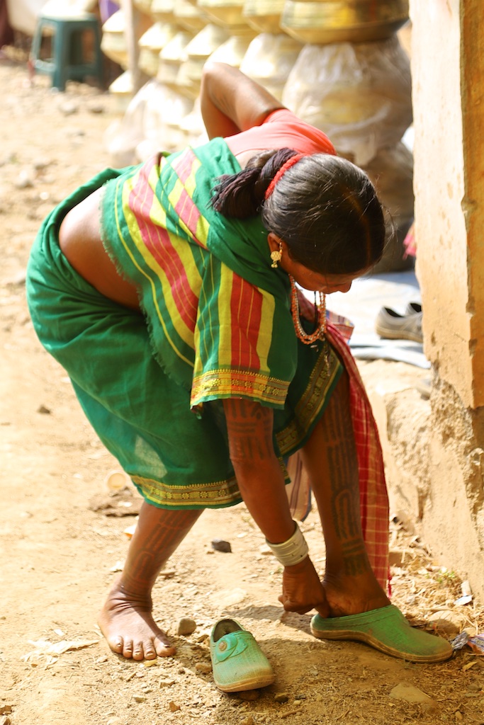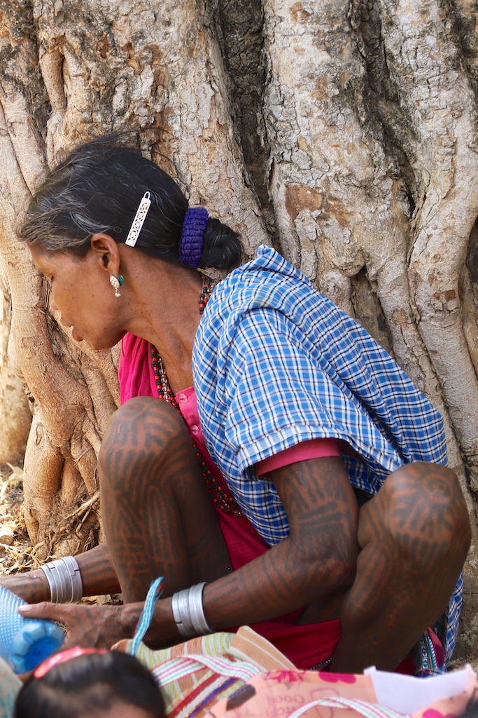 Les femmes tatouées Baiga sont pour moi un des points forts du voyage …car j’ai déjà eu l’occasion de les admirer il y a 5 ans et la signification de ces tatouages me fascine…