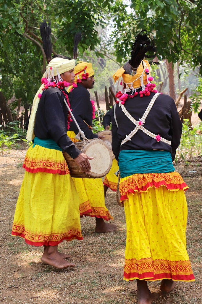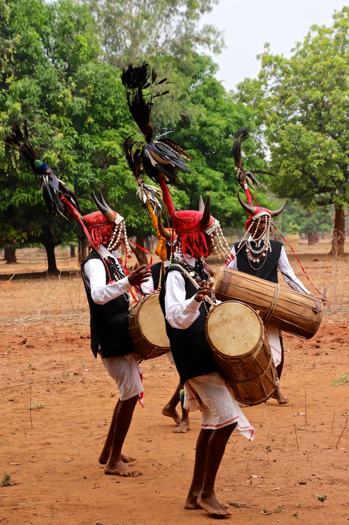 Les « Gain » et les « Jokta » (c’est-à-dire les meneurs du groupe de danse) se parent du Lingo Singar (Elwin 1947), une combinaison de jupes, d’ornements lourds et de coiffures élaborées allant du turban aux coiffes décoratives en corne de bison ( le groupe Muria que ja’vais vu il y a 3 ans portait des cornes de Bison). La plupart des ornements ornés riment et agrémentent la musique pendant la danse.