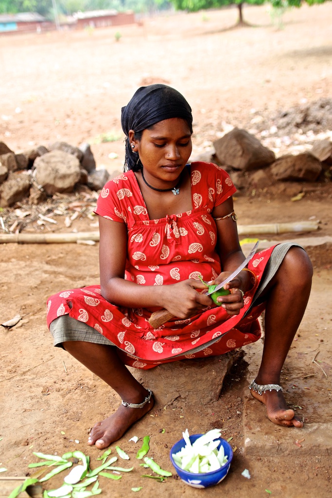 Ci dessous une petite fille Gadaba en train de faire consciencieusement la vaisselle …ici le conditionnement des femmes n’attends pas le nombre des années ..