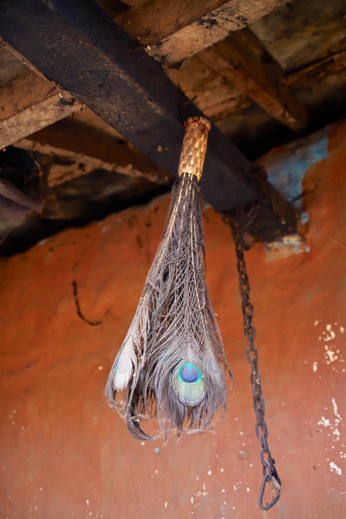 Une autre particularité de ce beau village Gadaba ..il possède une chaman relativement jeune …celle ci possède une chevelure impressionnante qu’a priori, elle n’a jamais peignée. La maison du chaman est coquette et peinte en rose : de nombreux objets et plantes sont suspendus à un fil au dessus de l’entrée afin d’éloigner les mauvais esprits.