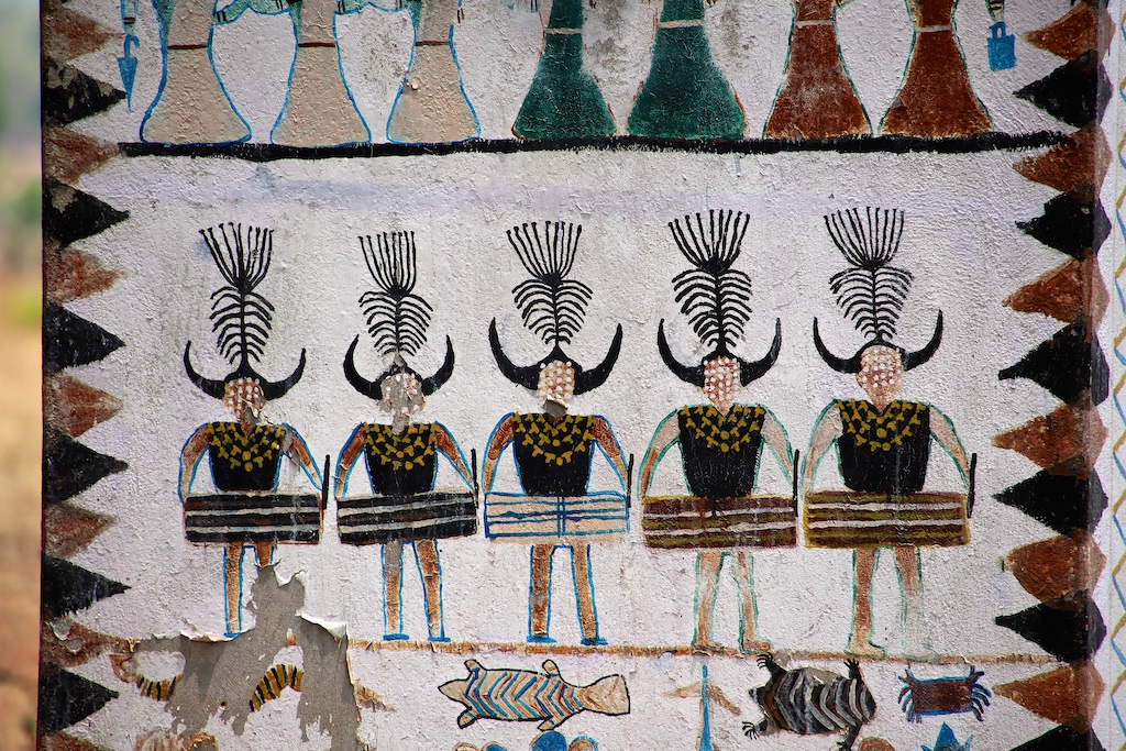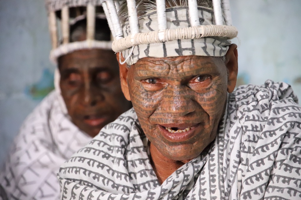 Les membres de la tribu portent des tatouages sur les mains et le front et de nombreuses boucles d’oreilles …les anneaux de nez sont générallement en or.