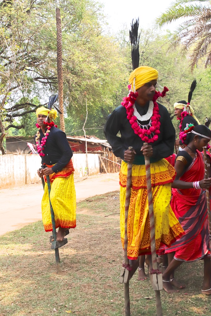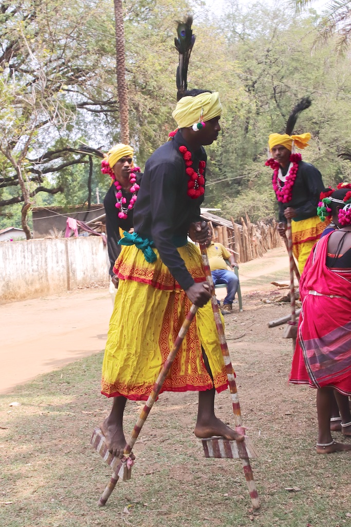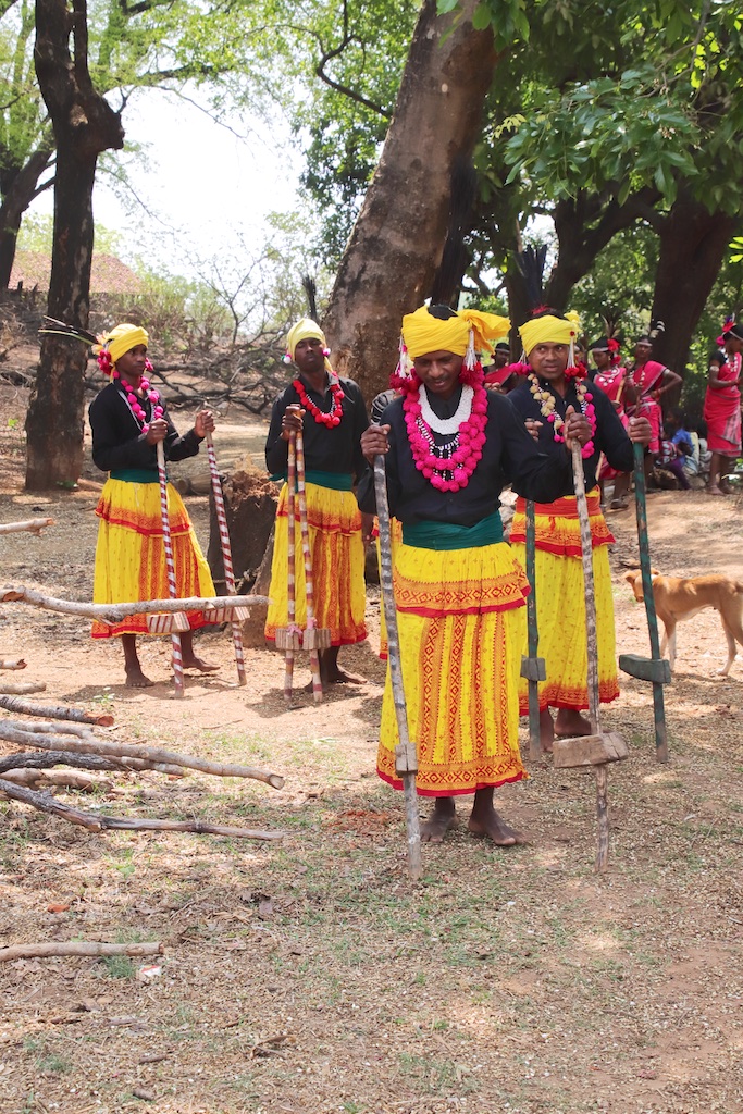 Le lendemain matin de bonne heure nous allons au village Muria afin que leur danse qui a lieu avec des échasses et qui est très fatigante ne fasse pas avec une temperature torride !!!