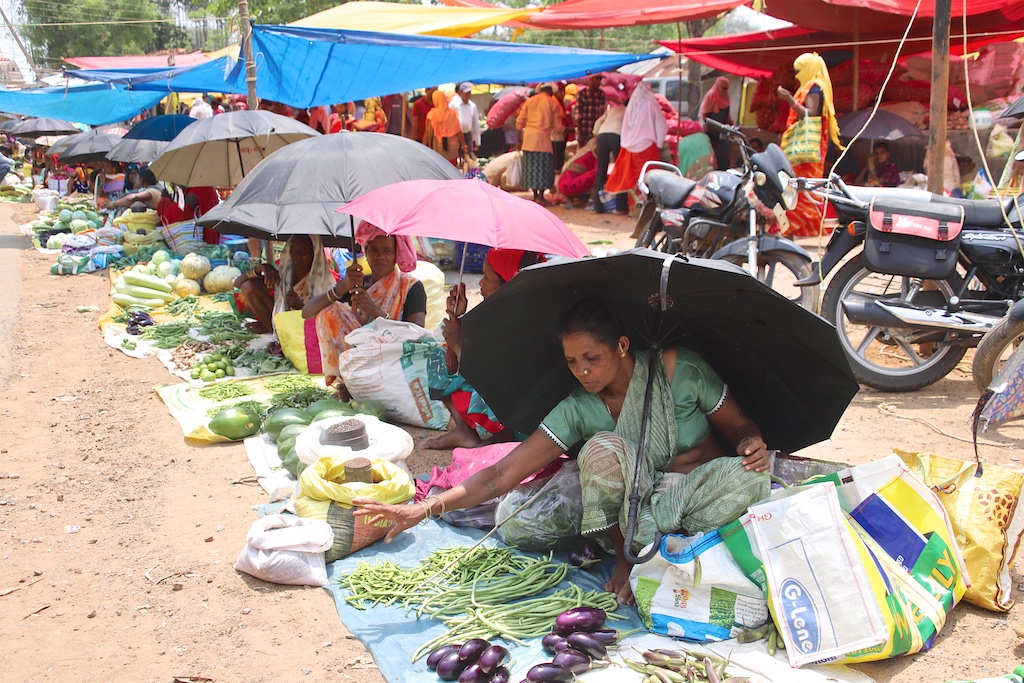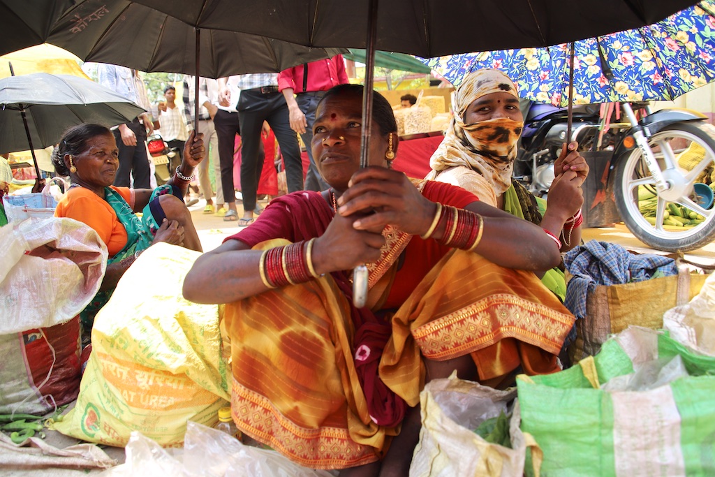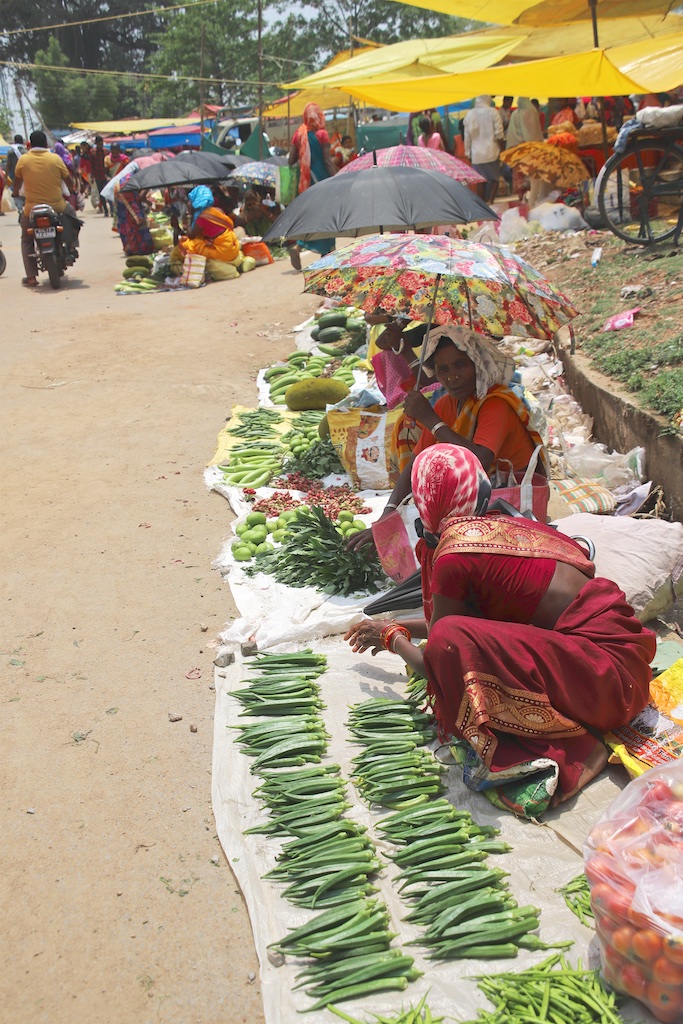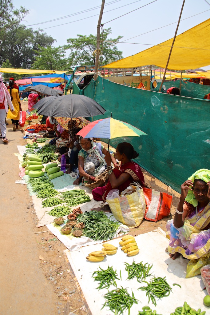 Le marché de Kondagaon est un magnifique marché surtout fréquenté par les Muria …Les gens sont très sympas mais il fait tellement chaud qu’ils sont obligés de s’abriter sous d’énormes parapluies …vraiment pas top pour les photos !!