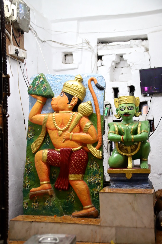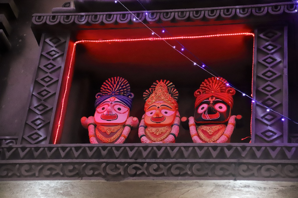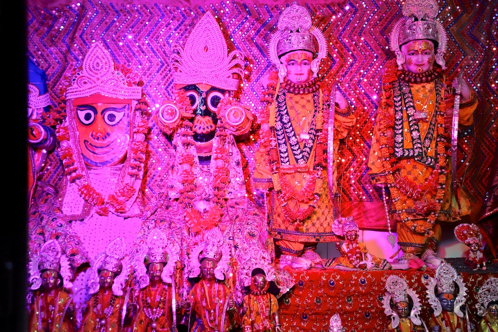 Une belle statue du Seigneur Jagannath Swamy, de Balabhadra Bhaiya et de sa sœur Subhadra est installée. Parallèlement à cela, la statue de Hanumanji, du Seigneur Shiva, de la mère Parvati, du fils Ganesha, de Kartikeya et de la fille Ashok Sundari ainsi que de la famille sont assis dans les locaux du temple. Oui car comme si la religion hindoue n’était pas assez compliquée on a rajouté Jagannath, son frère et sa soeur !!!