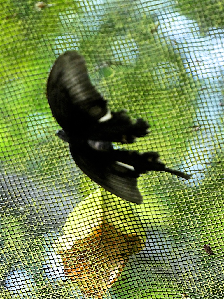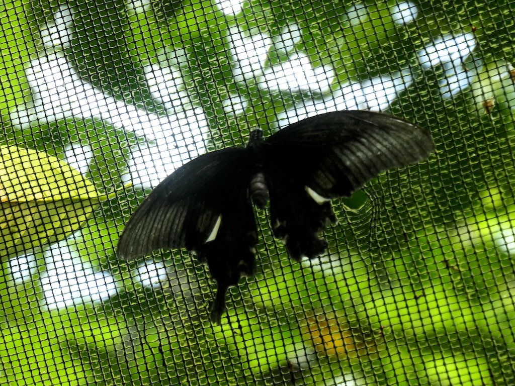 Nous visitons ensuite une serre à papillon grace à la gentillesse du garde avec qui nous avons sympathisé …comparé à ce que j’ai vu au Japon avec Hiromi c’est un désastre absolu : il n’y a qu’une chrysalide et un seul papillon dans la serre !!!