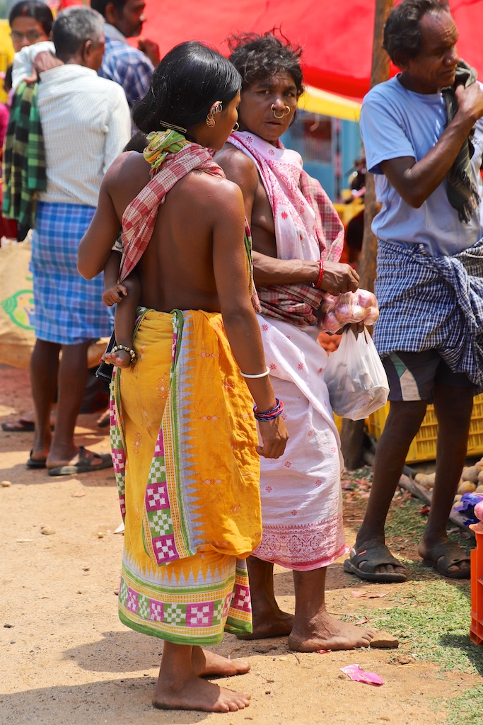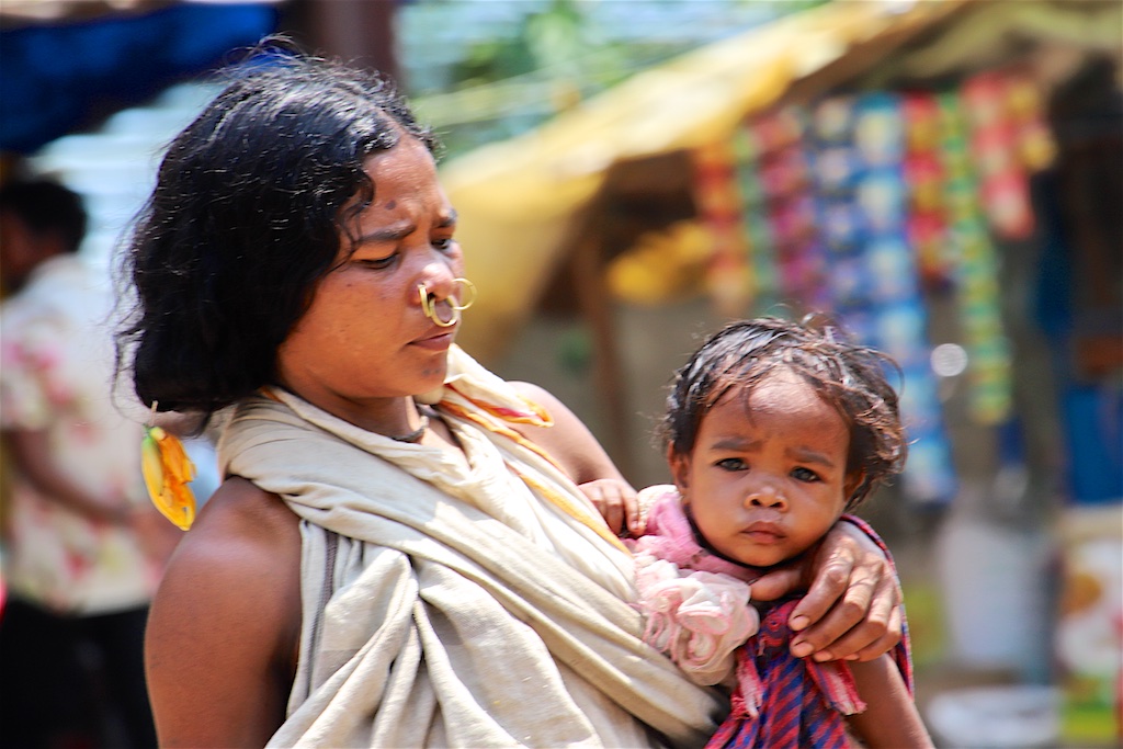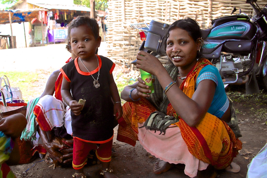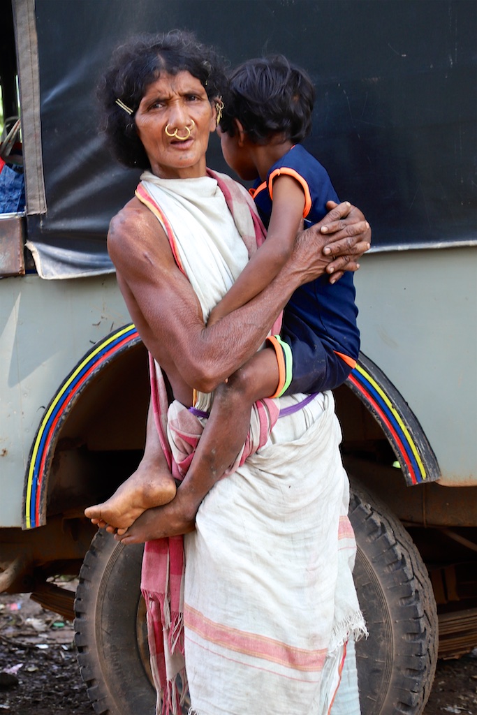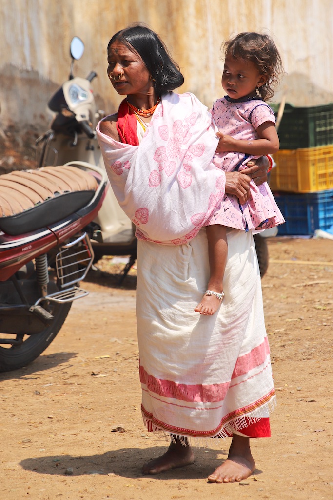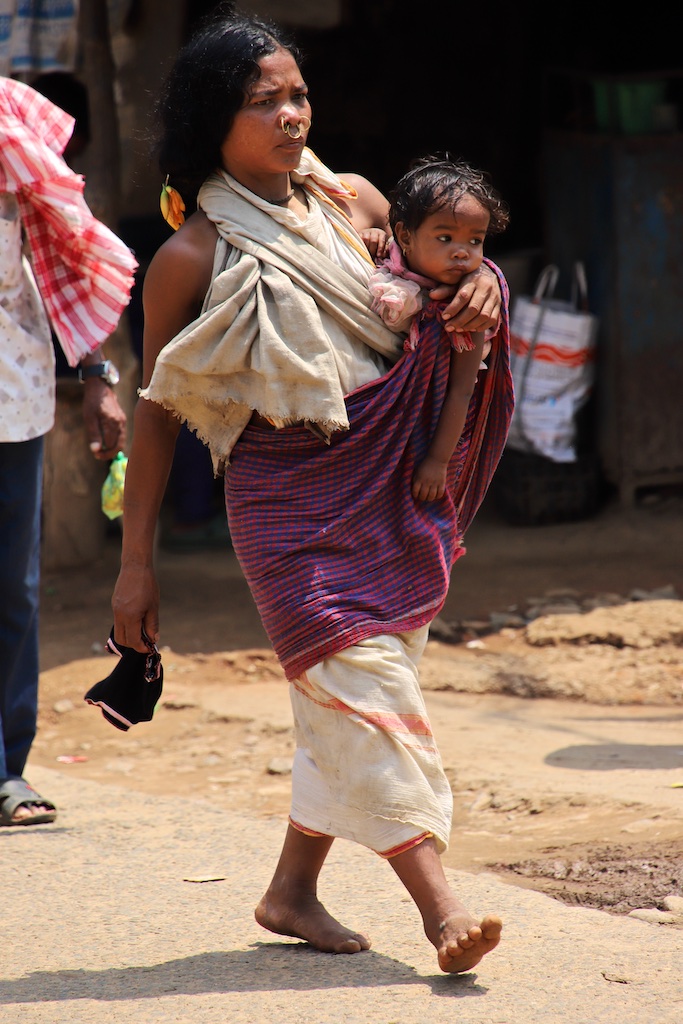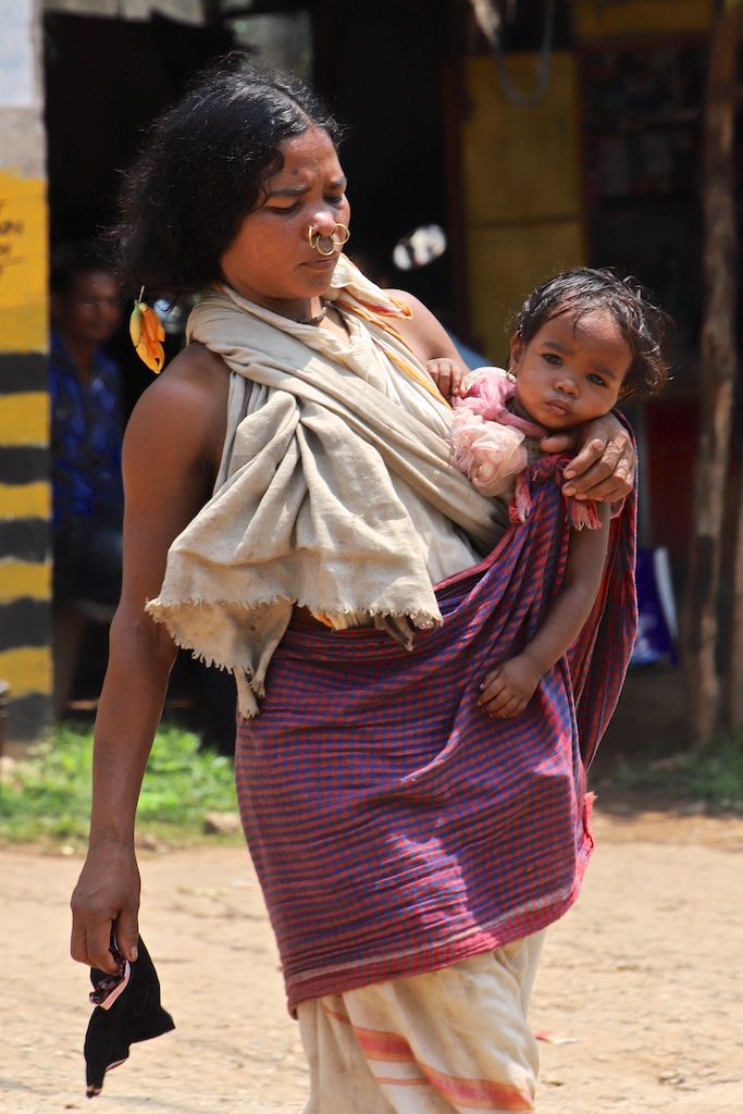 Ci dessous, cette femme et son bébé portent vraiment le costume traditionnel des Gondria Kondh…Les filles sont mariées très jeunes …souvent autour de 15 ans !!!