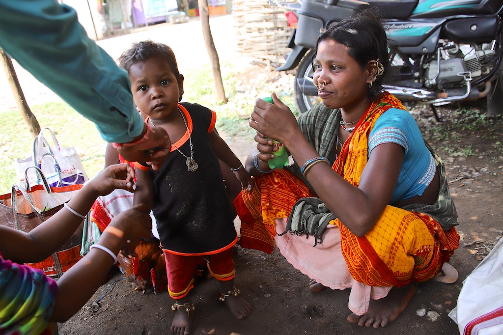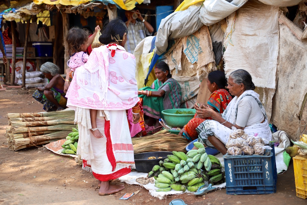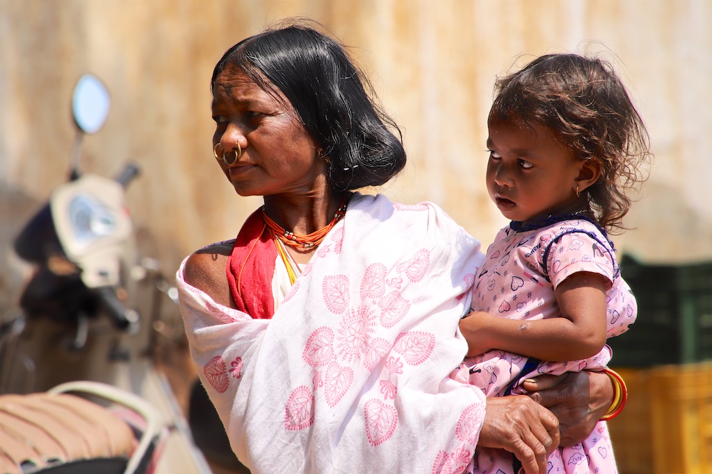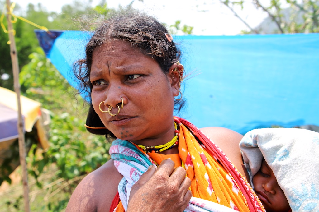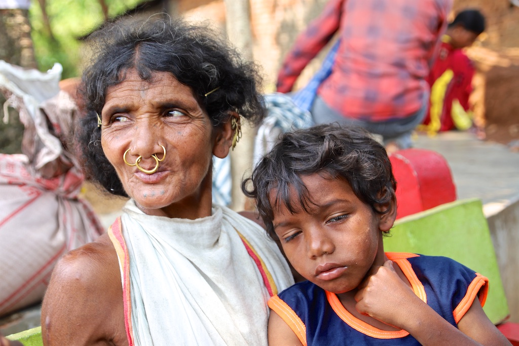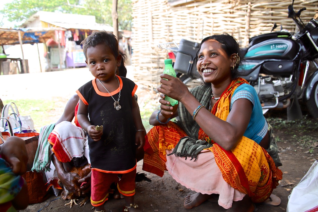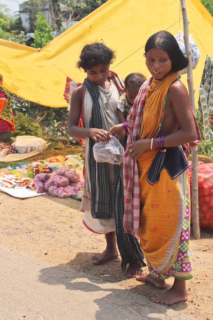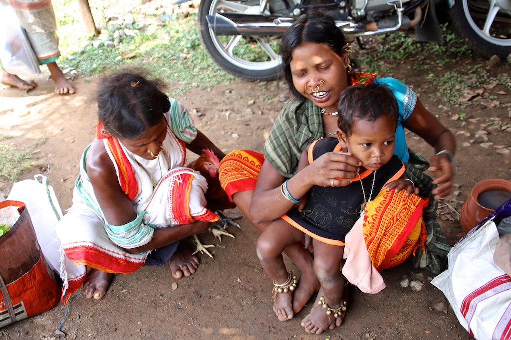 Ci dessous, cette femme et son bébé portent vraiment le costume traditionnel des Gondria Kondh…Les filles sont mariées très jeunes …souvent autour de 15 ans !!!