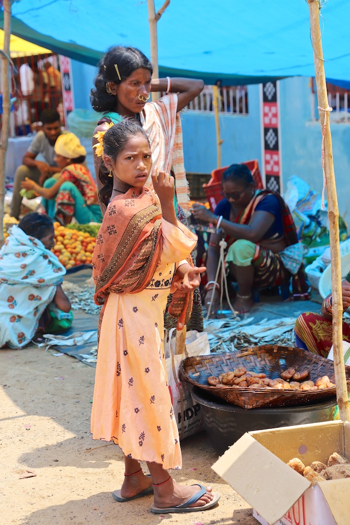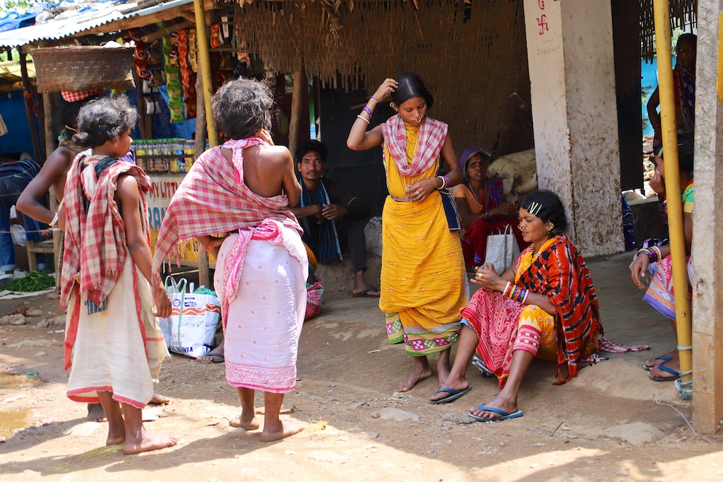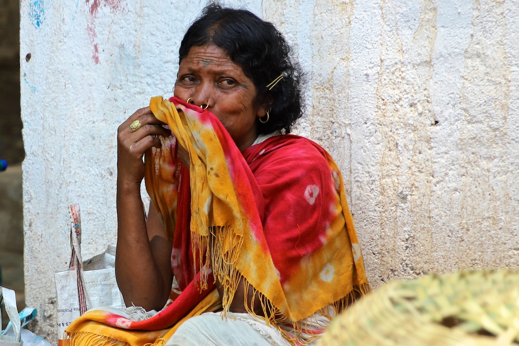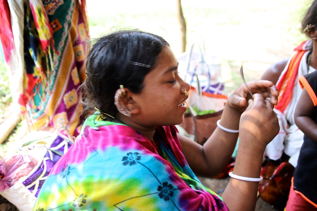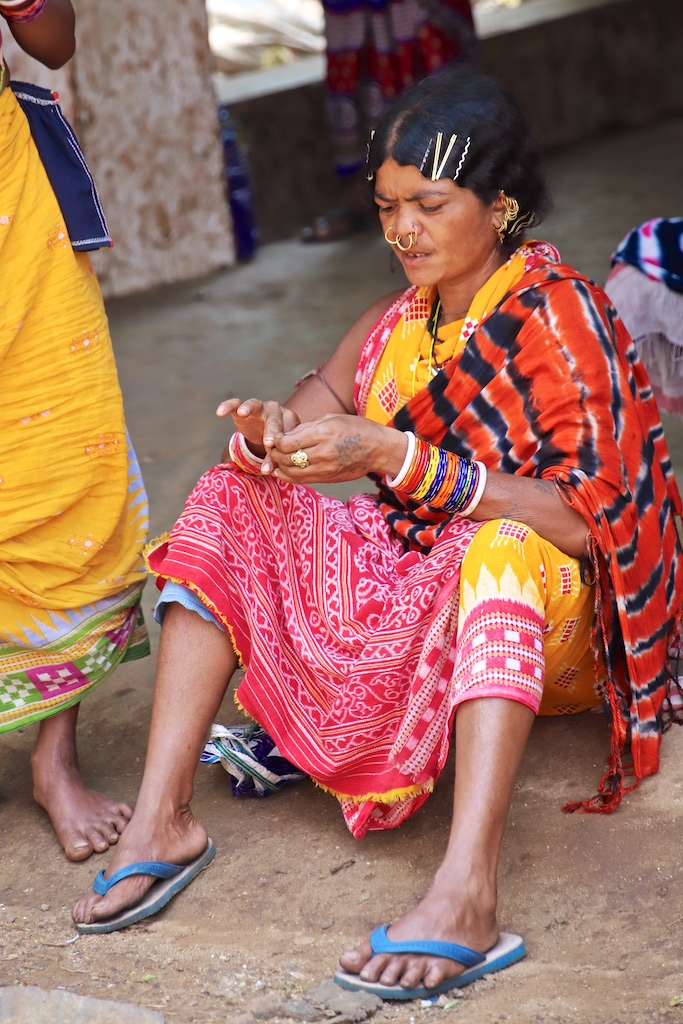 Dans le marché nous rencontrons une bande de femmes super sympas qui sont uniquement Kondh …elles fument des cigares qu’elles fabriquent elles mêmes avec du tabas qu’elles font pousser dans leur champs …ce qui est incroyable est qu’elles fument le cigare avec le bout allumé à l’intérieur de la bouche !!! Elles me font une démonstration mais ce n’est pas trop clair sur les photos !!