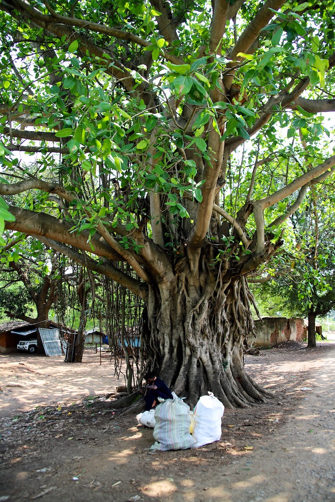 Effectivement derrière la voie ferrée il y a un abri sous une bâche où les femmes peuvent attendre les tuk tuk ou les jeep pour les ramener dans leurs villages …