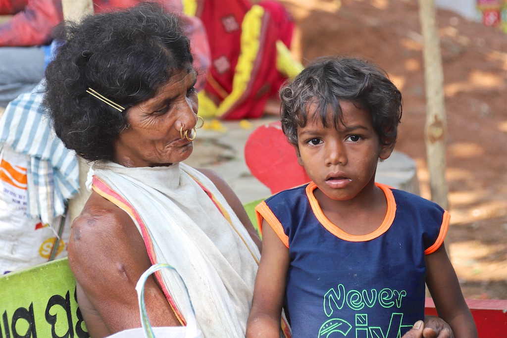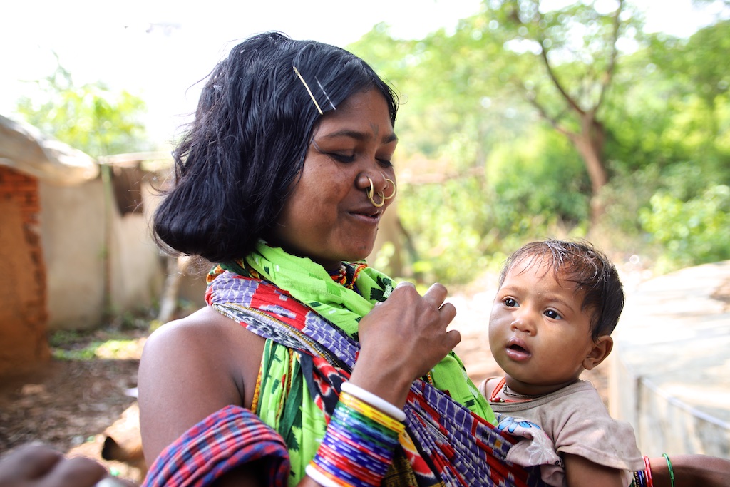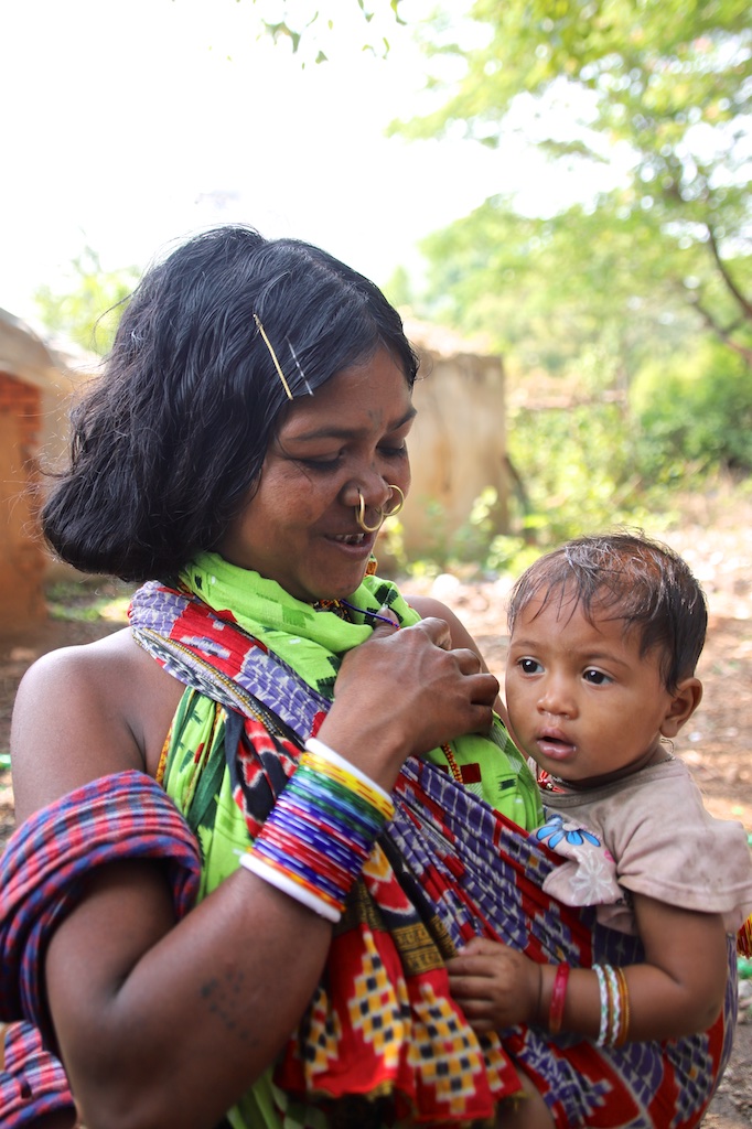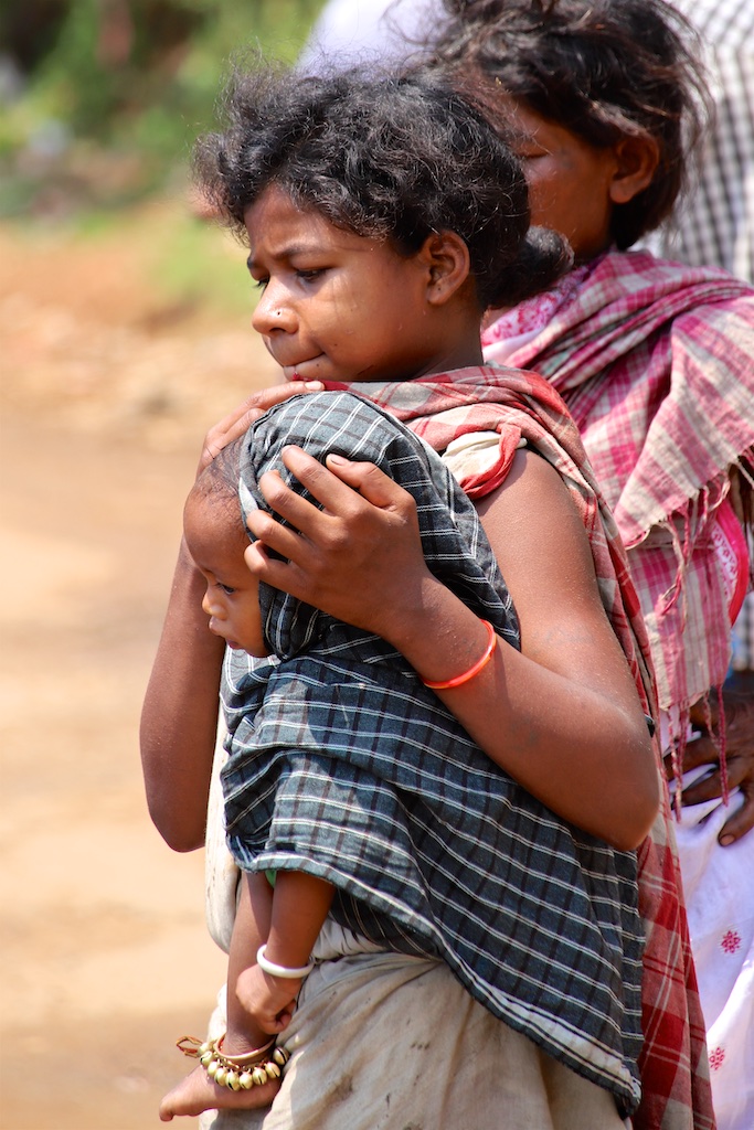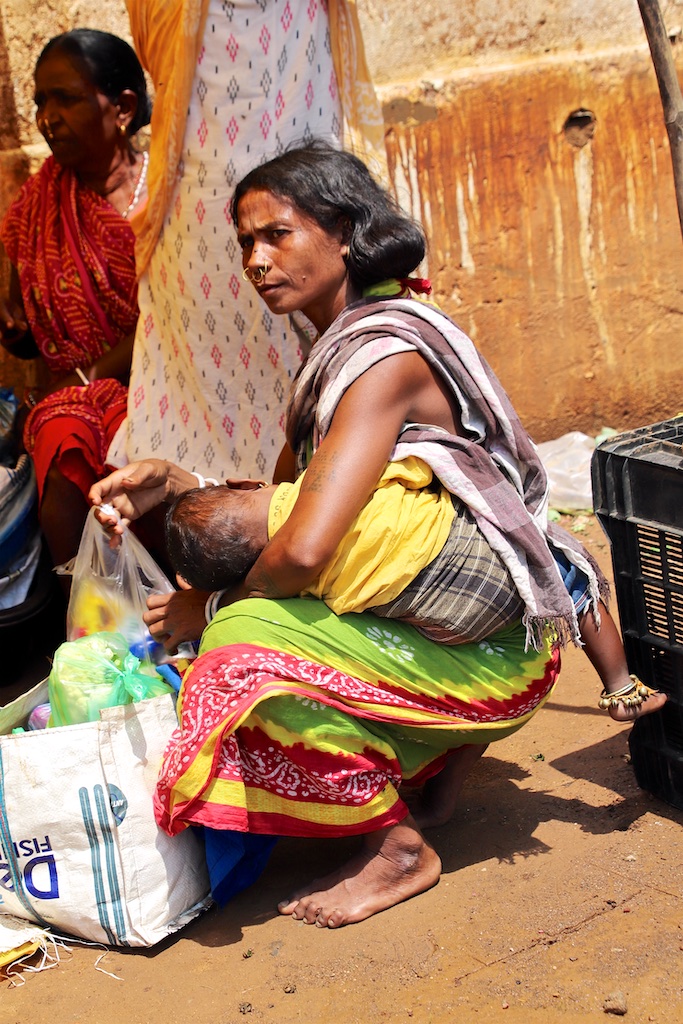 Ci dessous, cette femme et son bébé portent vraiment le costume traditionnel des Gondria Kondh…Les filles sont mariées très jeunes …souvent autour de 15 ans !!!