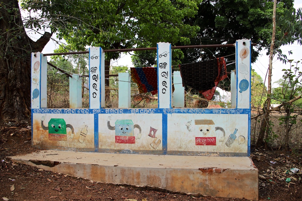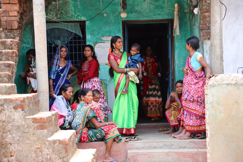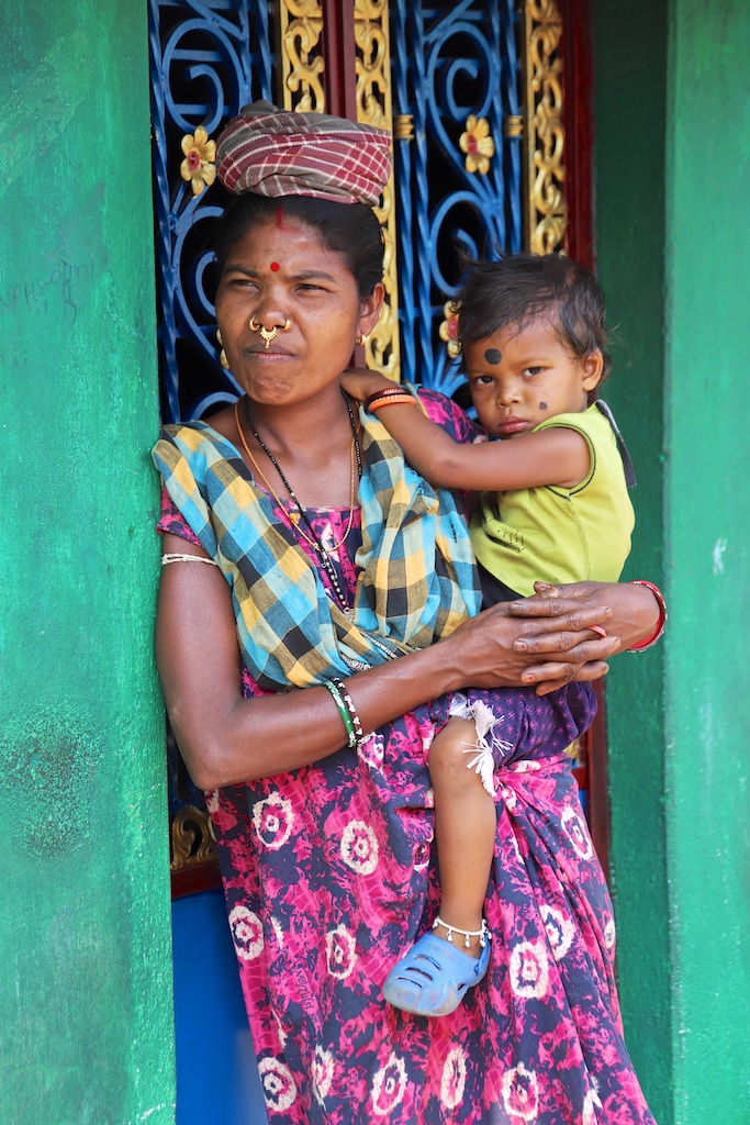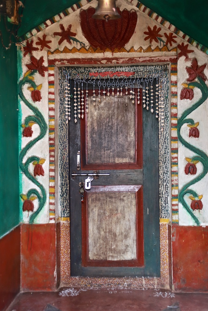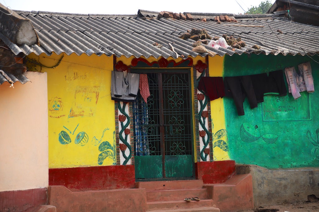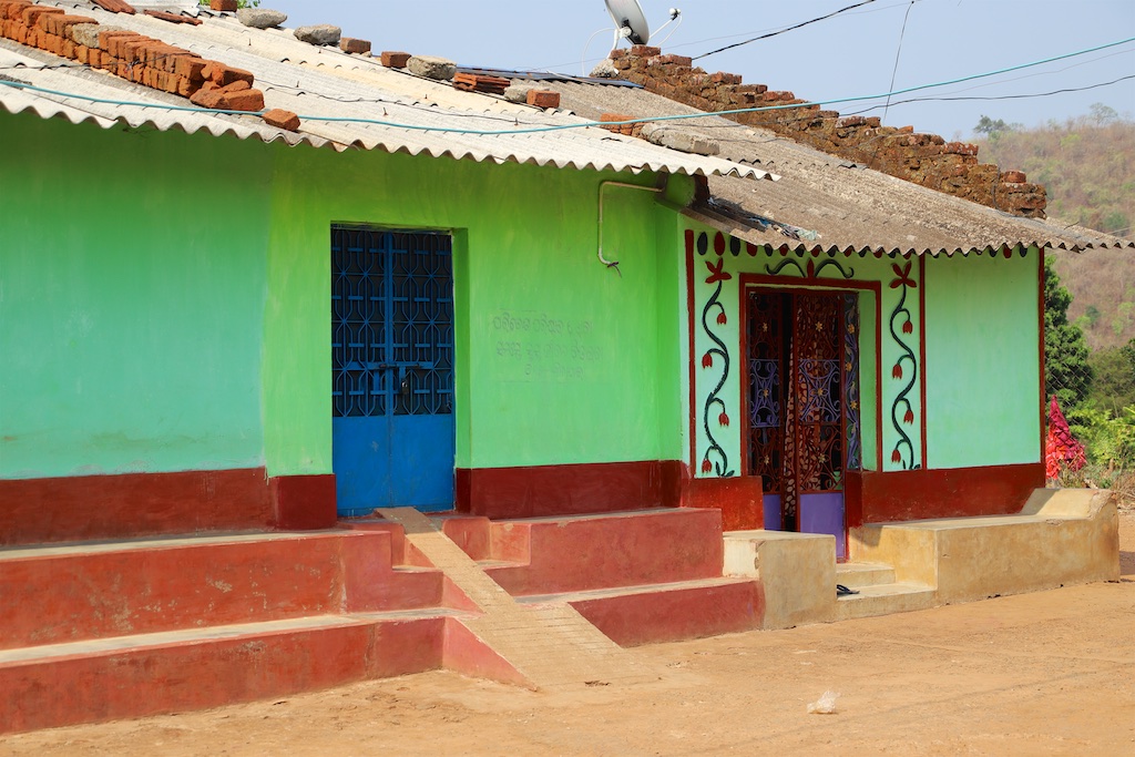 La partie du village habitée par les Kuvi kondh est nettement plus riche, les maisons sont plus hautes : on n’est pas obligés de se pencher pour y pénétrer ..les encadrements de porte sont joliment décorés avec des motifs floraux …
