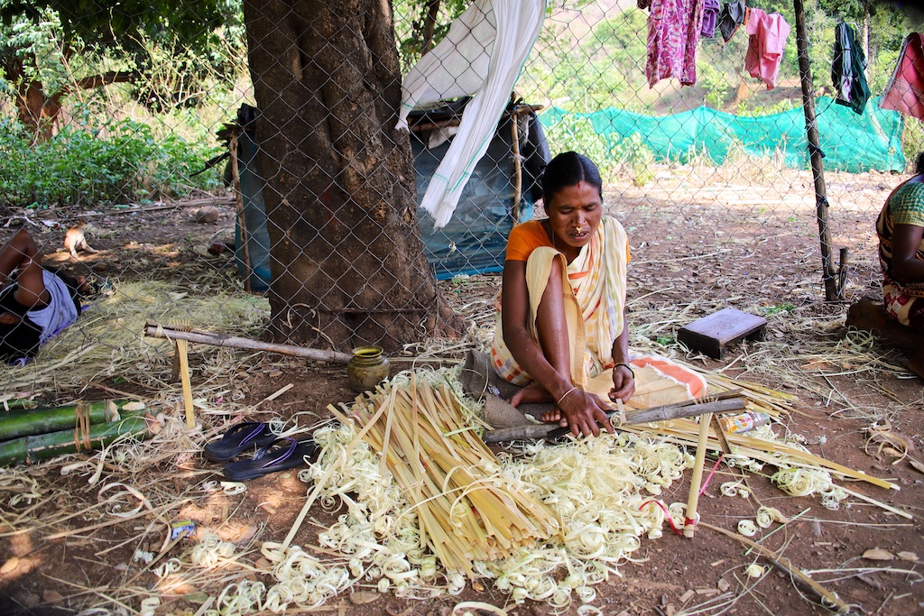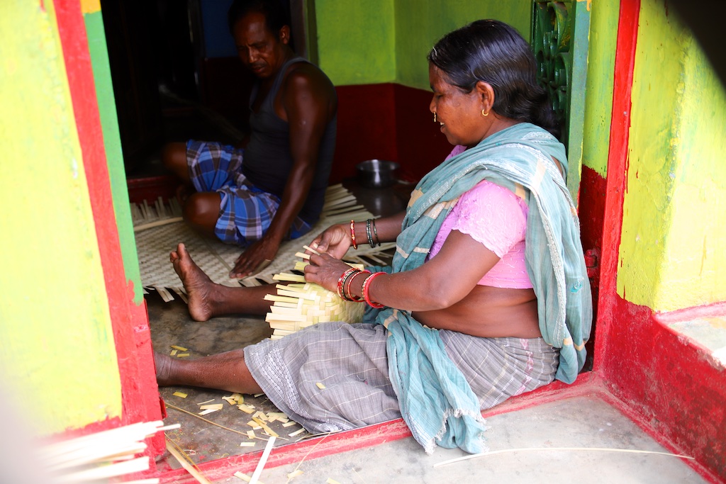 Une partie des habitants du village est intouchable et gagne sa vie en fabricant des panier à partir de lamelles de bamboo.