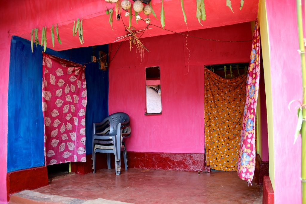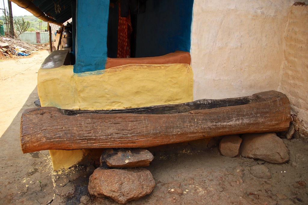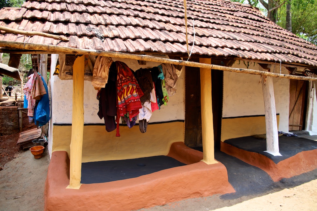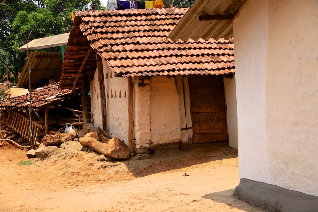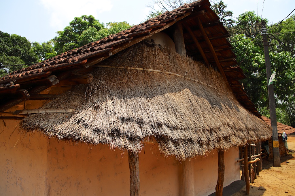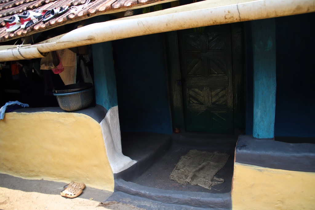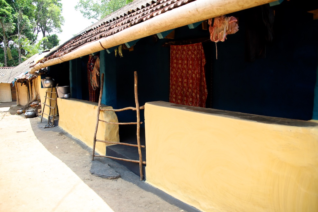 Outre leur propreté les maisons des Gadaba son décorées avec des couleurs particulièrement harmonieuses . Antérieurement, les maisons étaient couvertes de chaume …maintenant ce sont plutôt des tuiles ou de la tôle ondulée , plus économique. Les propriétés sont délimitées avec des entassements de grosses pierres qui ont été montées il y a de nombreuses années.