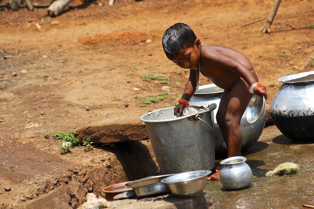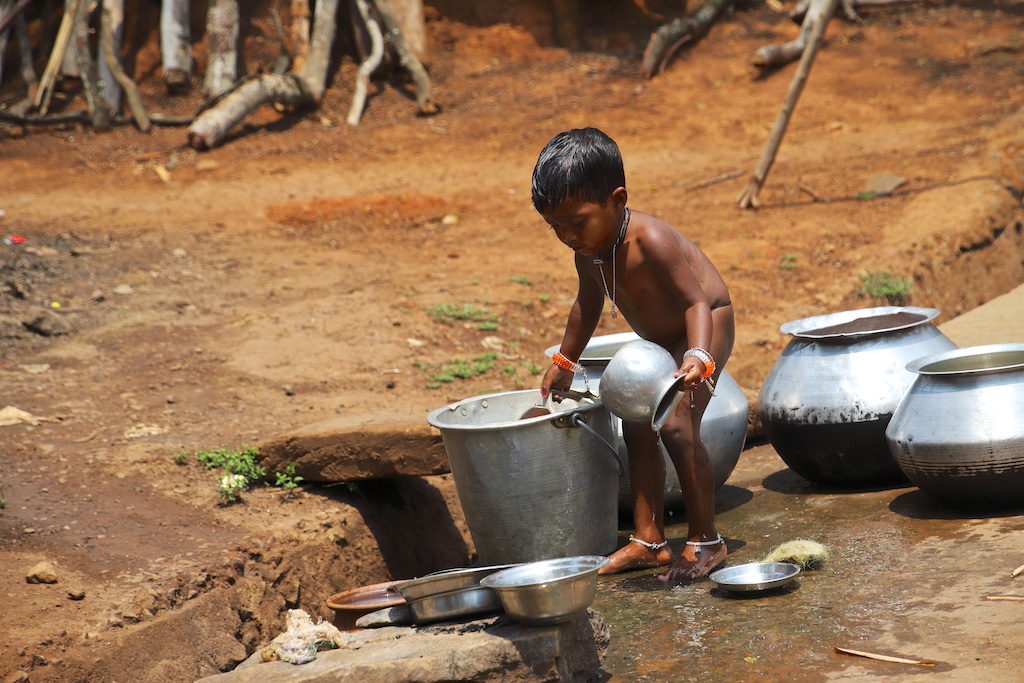 Ci dessous une petite fille Gadaba en train de faire consciencieusement la vaisselle …ici le conditionnement des femmes n’attends pas le nombre des années ..