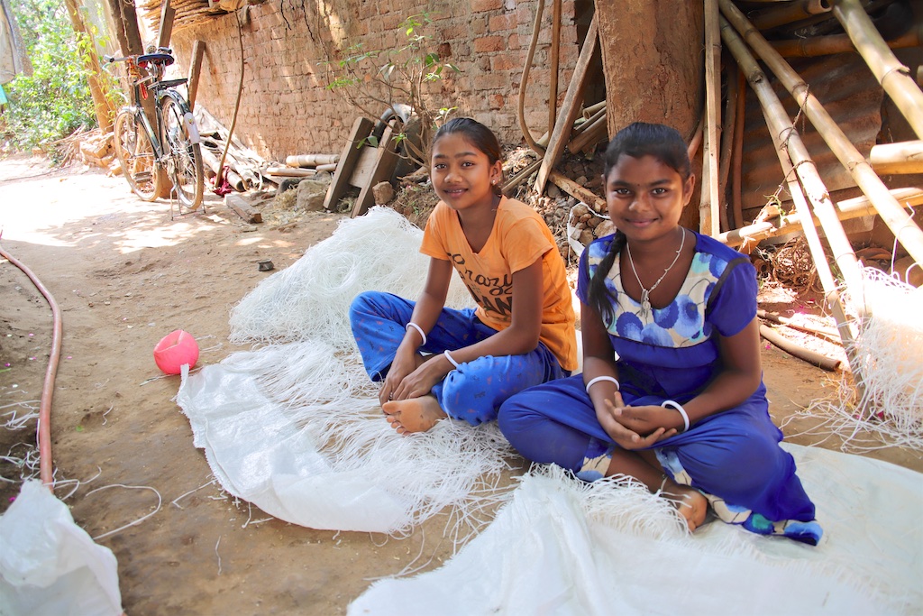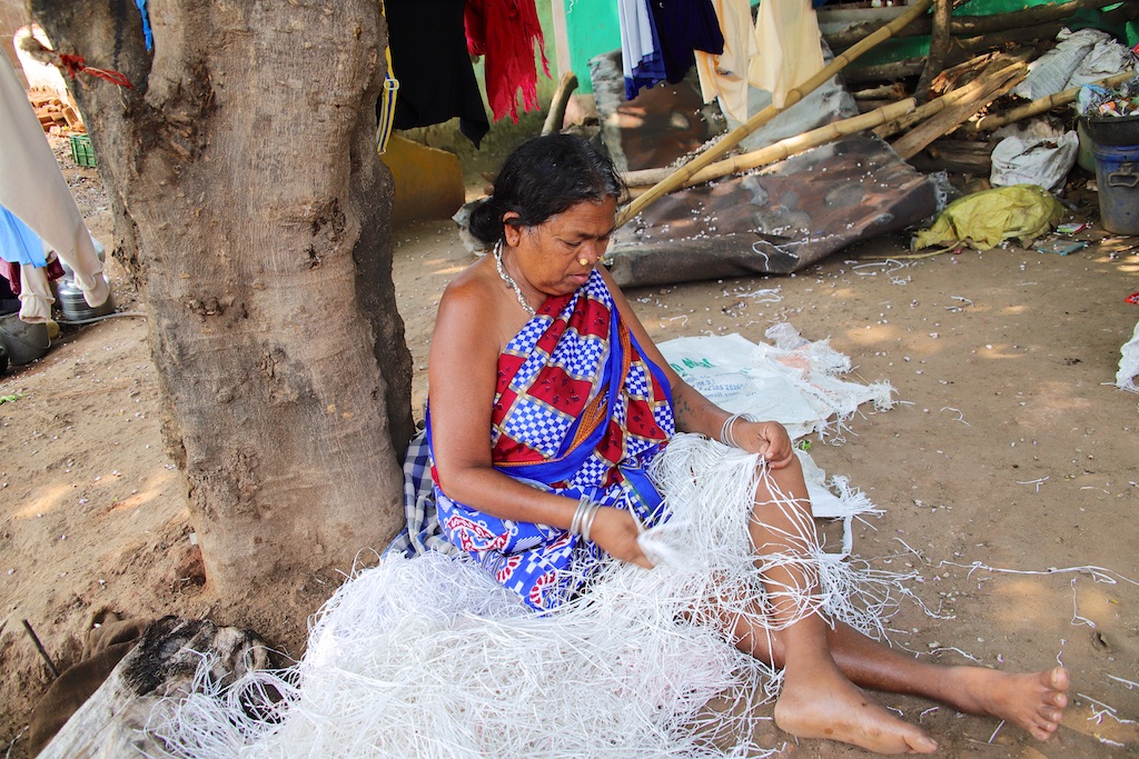 Outre les tissages qui sont fantastiques il existe une activité qui consiste à récupérer les fibres des sacs de toile pour en faire des cordes.