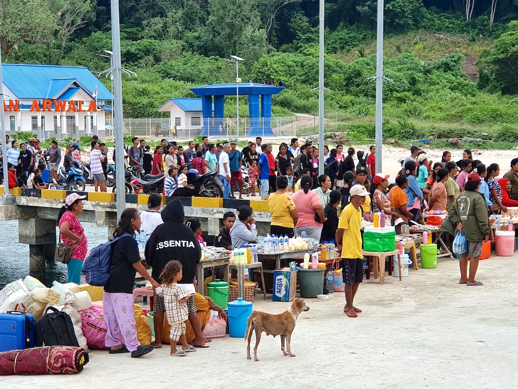 Un deuxième arrêt est prévu à Wetar à Arwala et là impossible de repartir car on est cantonné au port pendant 3 jours car il y a une alerte de grosses vagues et compte tenu de l’état du bateau …il vaut mieux rester au port…