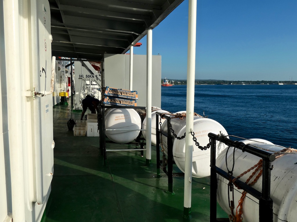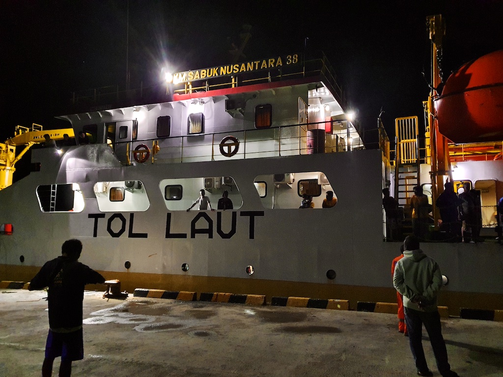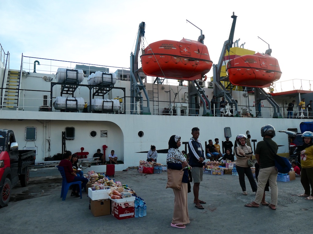 Les voyages en bateau en Indonésie sont l’école de la patience : le 17 mai on est censés partir à 19 heures mais l’équipage nous contacte pour nous demander d’être là avant 17h …on arrive à 16h mais on ne part qu’après 20h …les Indonésiens sont tellement mal organisés que les documents du bateau ne sont pas prêts et cela se reproduira tout le long du voyage…