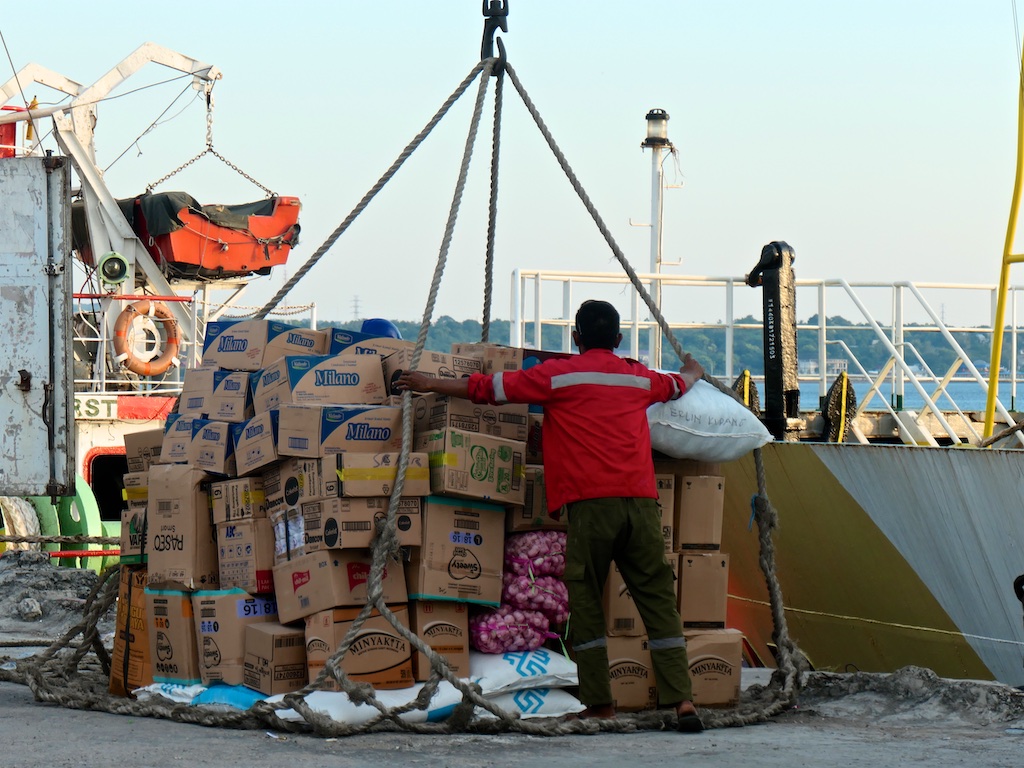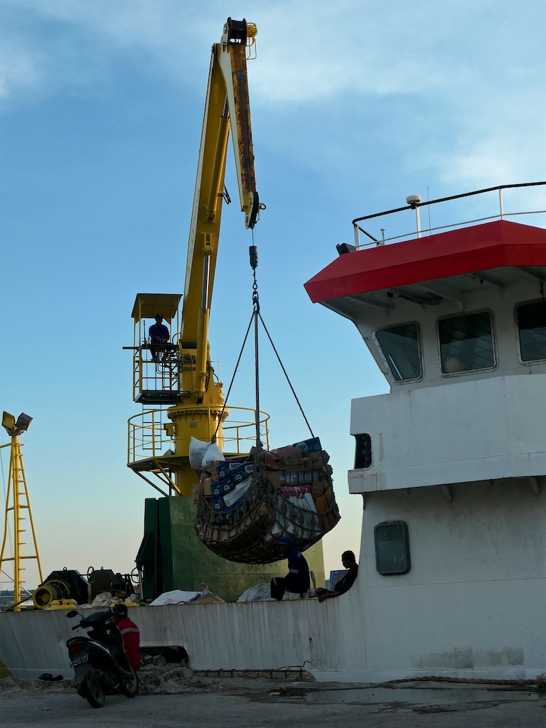 Le lendemain on arrive à Lirang une petite ile au large de Wetar où on reste plus de 3 heures le temps nécessaire pour décharger le riz destiné à cette ile qui n’en cultive pas…