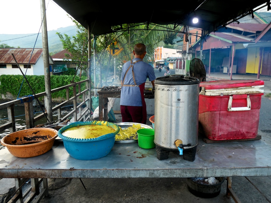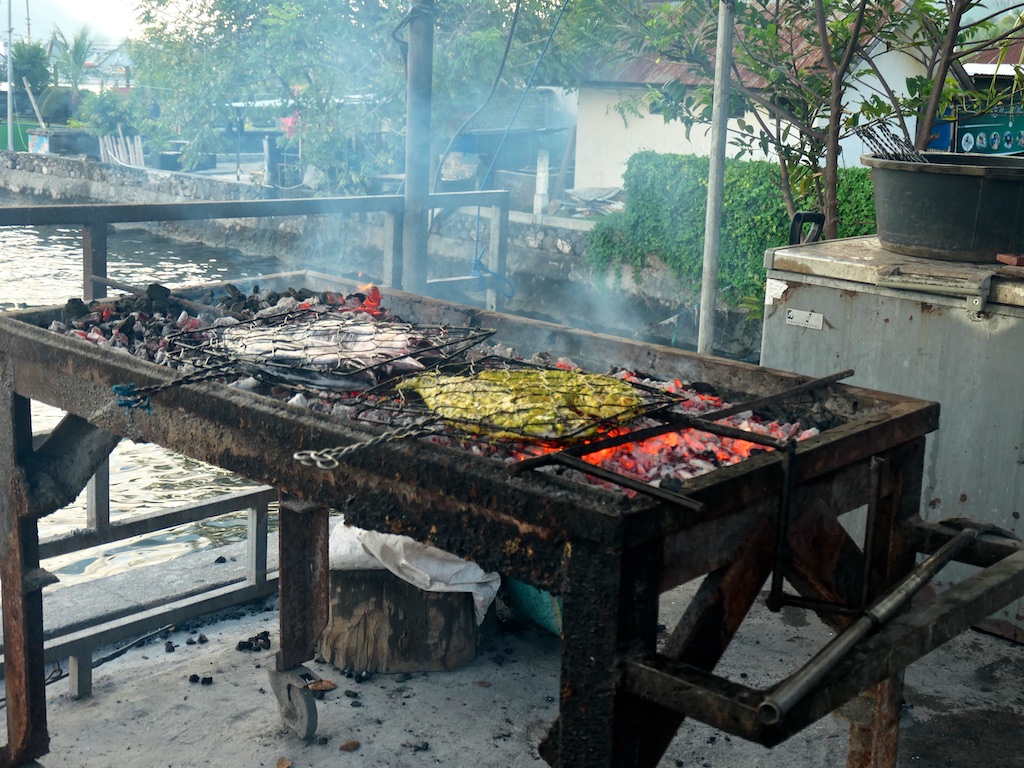 On se précipite à terre pour commander du poisson grillé …je suis déjà lassée des nouilles lyophilisées.