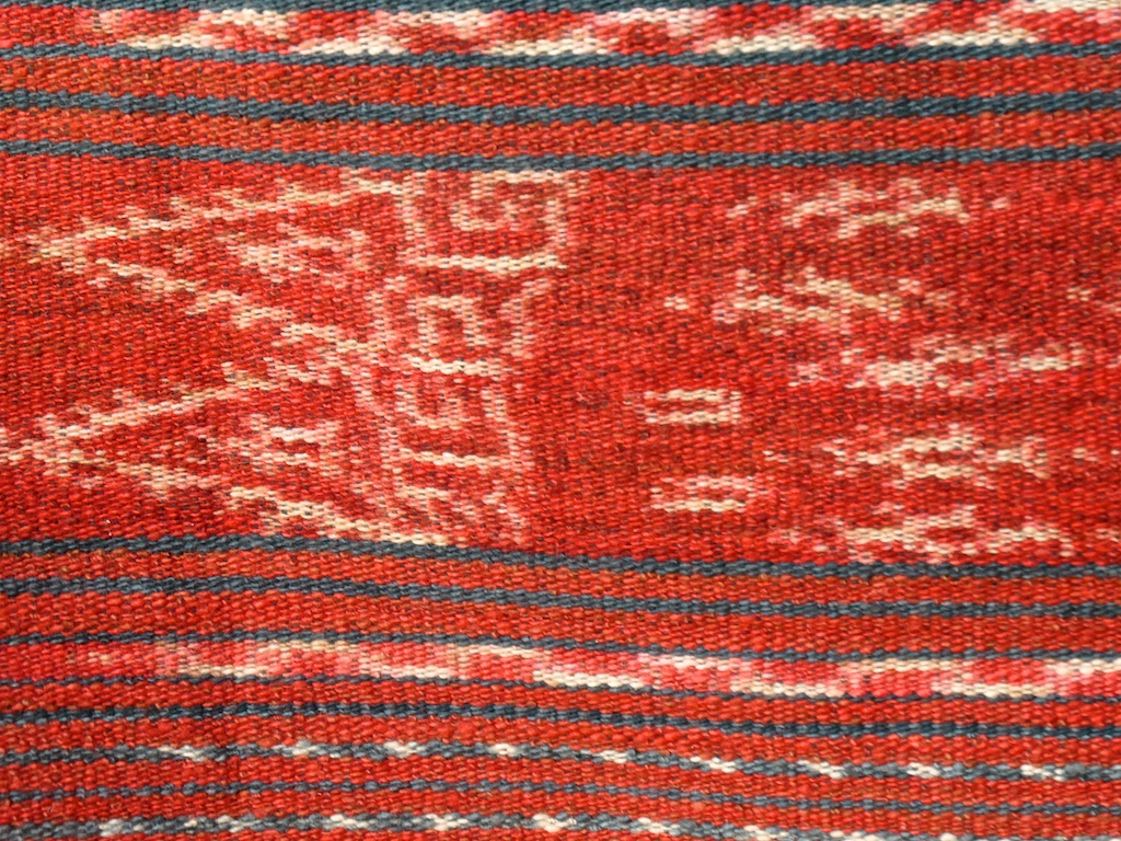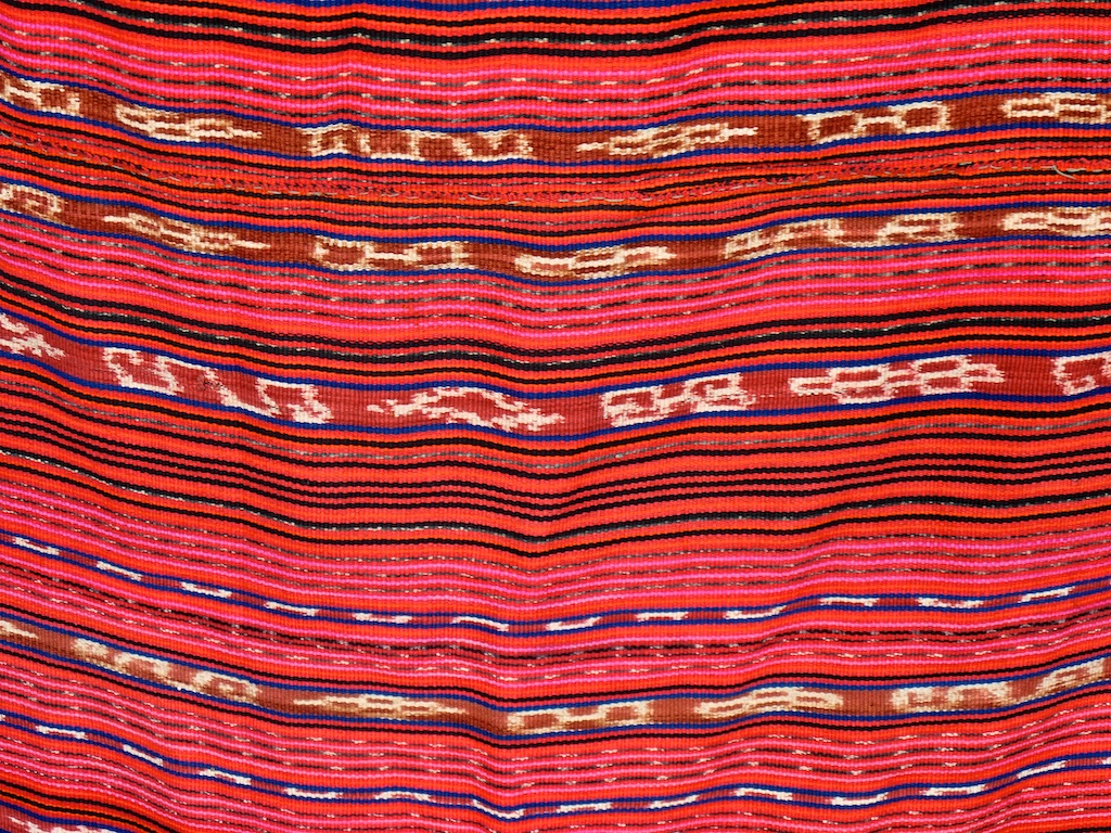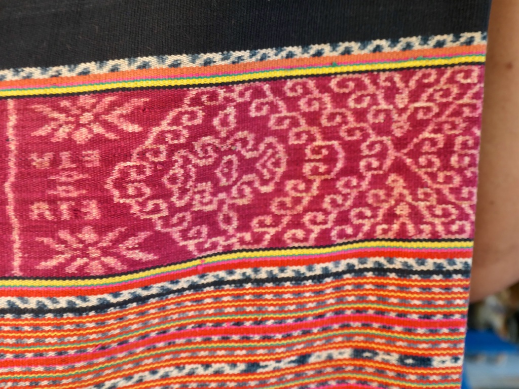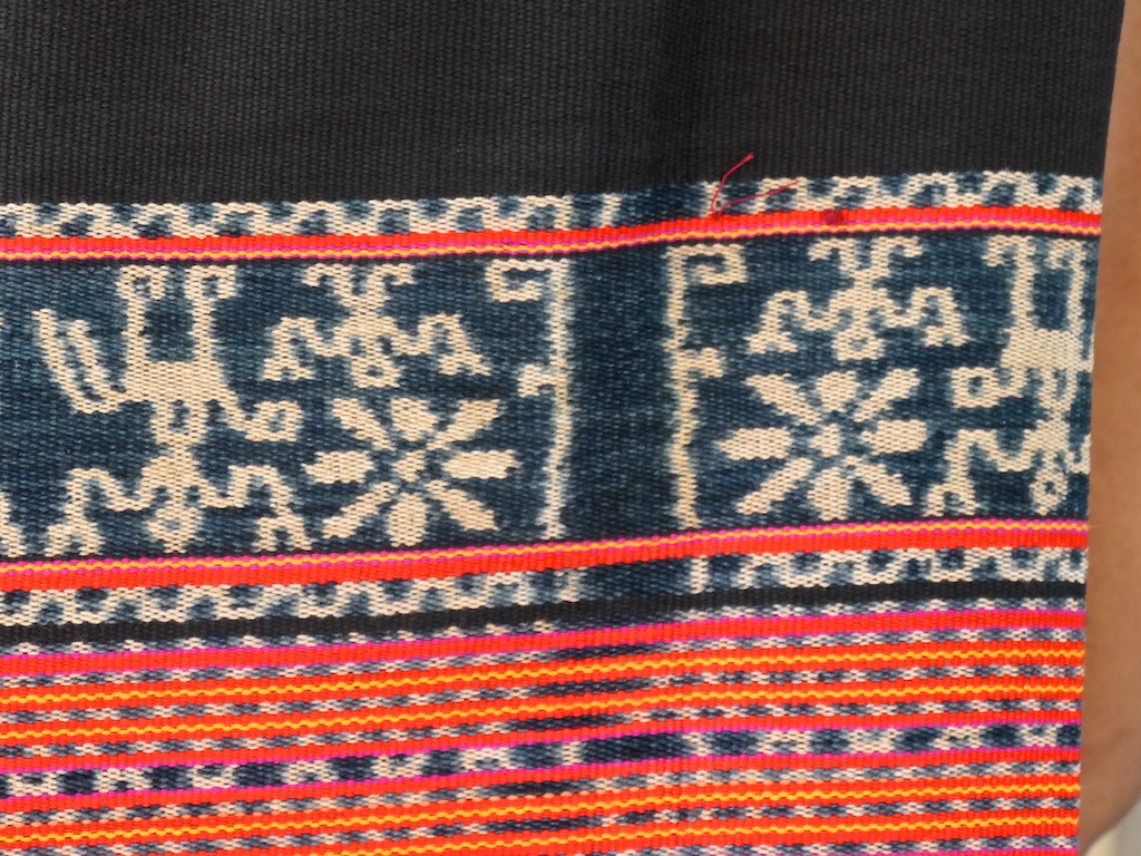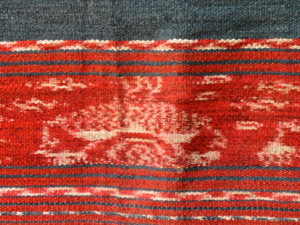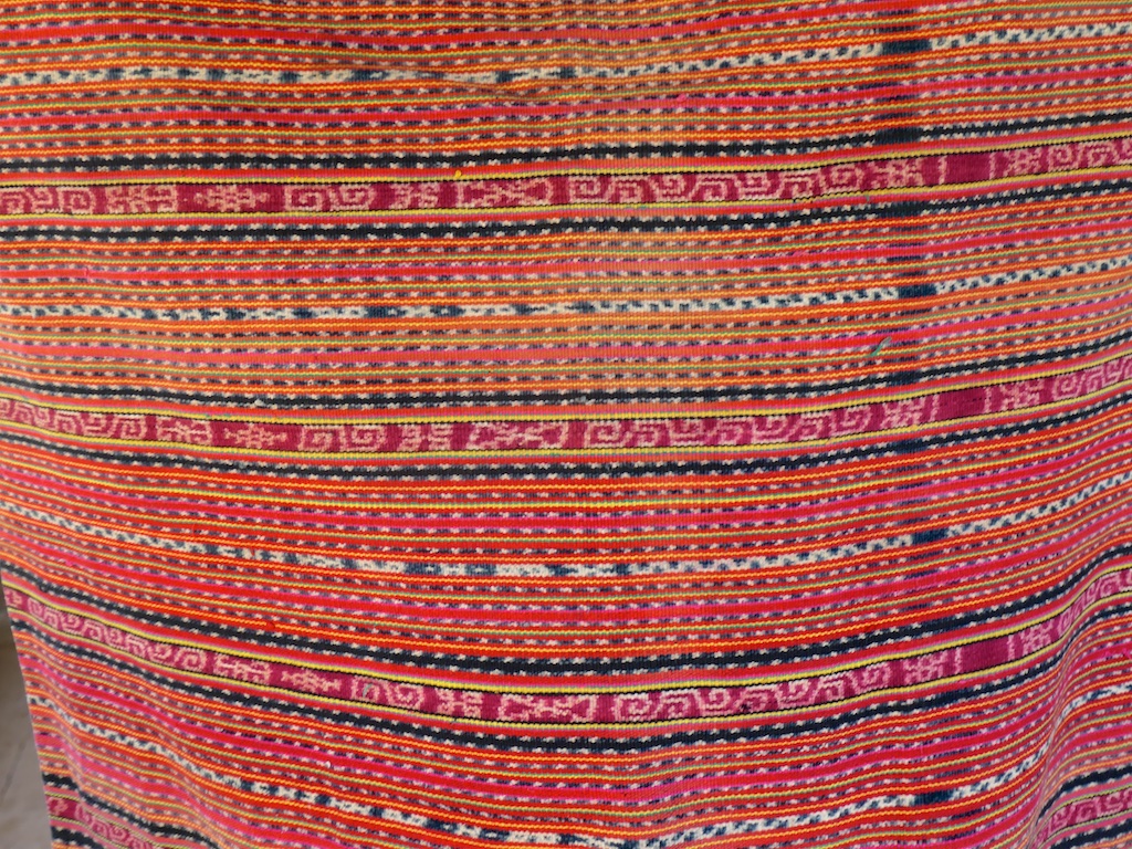 Toujours à Wetar avant le grand départ on trouve dans un des restaurants, un exemple de tissage dit « traditionnel » mais qui ne l’est pas vraiment …le coton est du marché et les couleurs sont synthétiques.