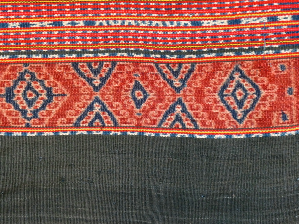 Les tissages de Kisar sont principalement un produit du monde austronésien – les influences étrangères ont été légères. Les premiers dessins ikat ont peut-être été apportés à Kisar, au Timor oriental et peut-être dans d’autres parties des îles de la Sonde par une vague tardive d’immigrants austronésiens du sud de Sulawesi. Ils ne semblent être arrivés qu’il y a environ mille ans, avant cela les habitants de cette région parlaient seulement des dialectes du papuan (Hull 1998,149-53). Ils ont introduit un nouveau style de tubeskirt à deux panneaux, avec un centre étroit rayé en chaîne entouré d’une paire de larges bandes ikat en chaîne composées de motifs carrés, terminés à chaque extrémité par de larges bandes noires unies.