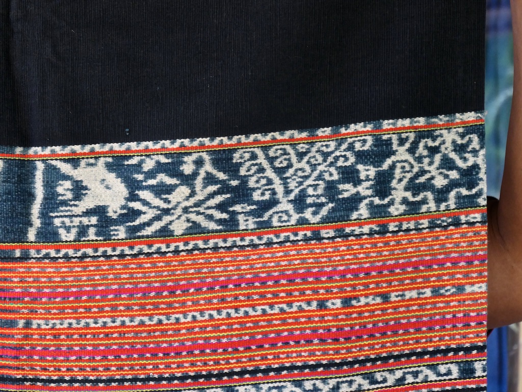 Dans le village suivant de Lebelau , on fait une belle découverte : un sarong kapas …photo è (coton filé à la main, couleurs naturel, tissage main ) La tisserande en veut 10 millions que je n’ai pas …on se contentera des photos !!!