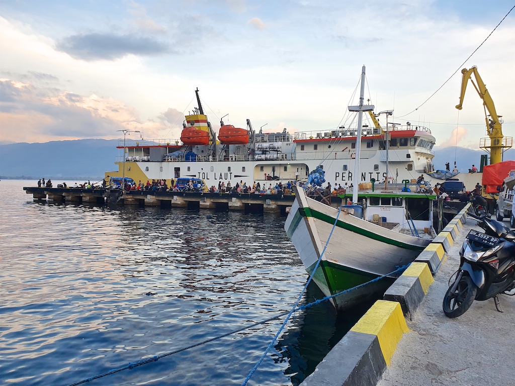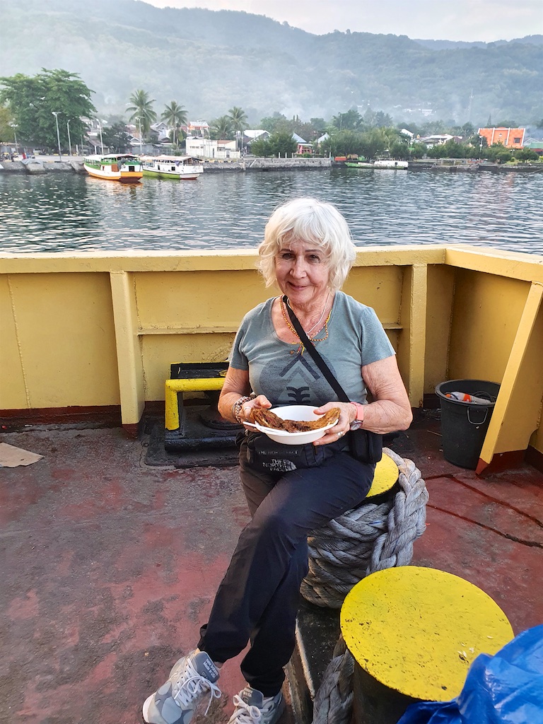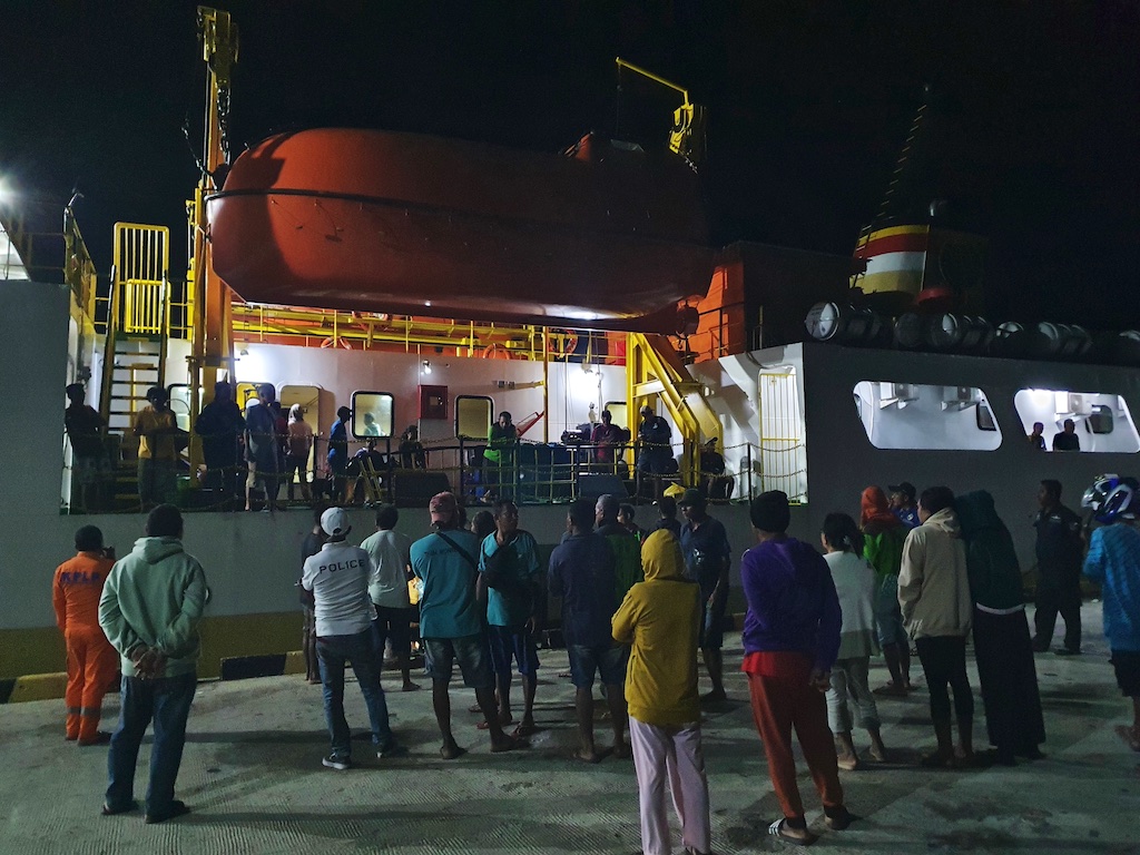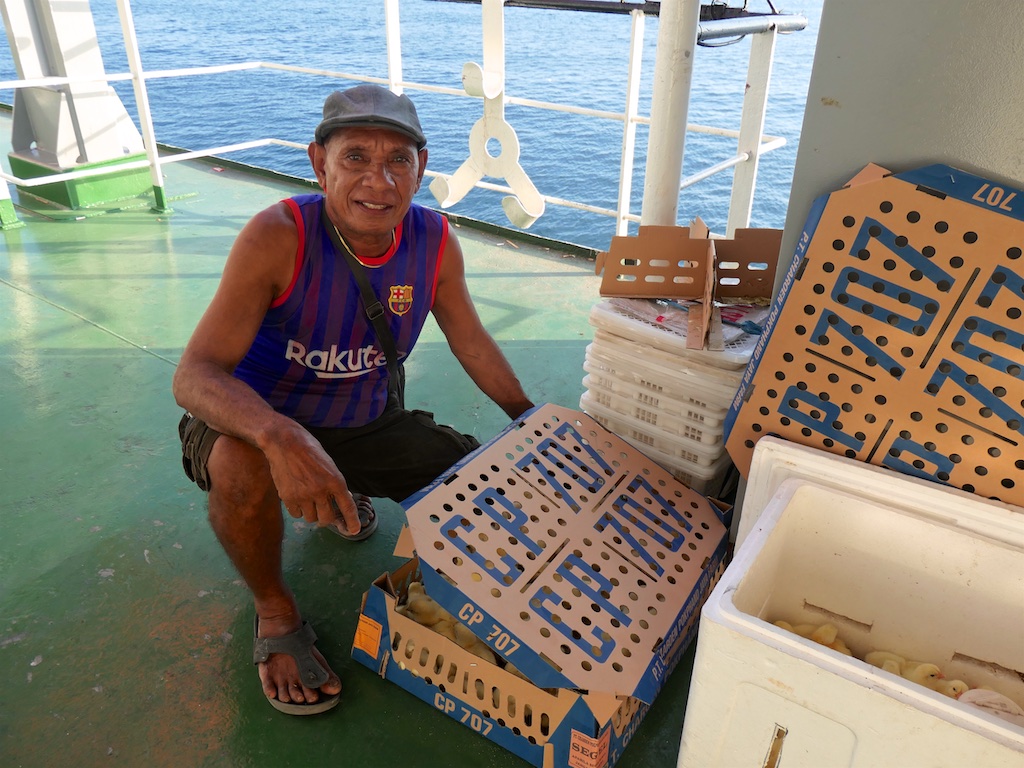 Les voyages en bateau en Indonésie sont l’école de la patience : le 17 mai on est censés partir à 19 heures mais l’équipage nous contacte pour nous demander d’être là avant 17h …on arrive à 16h mais on ne part qu’après 20h …les Indonésiens sont tellement mal organisés que les documents du bateau ne sont pas prêts et cela se reproduira tout le long du voyage…