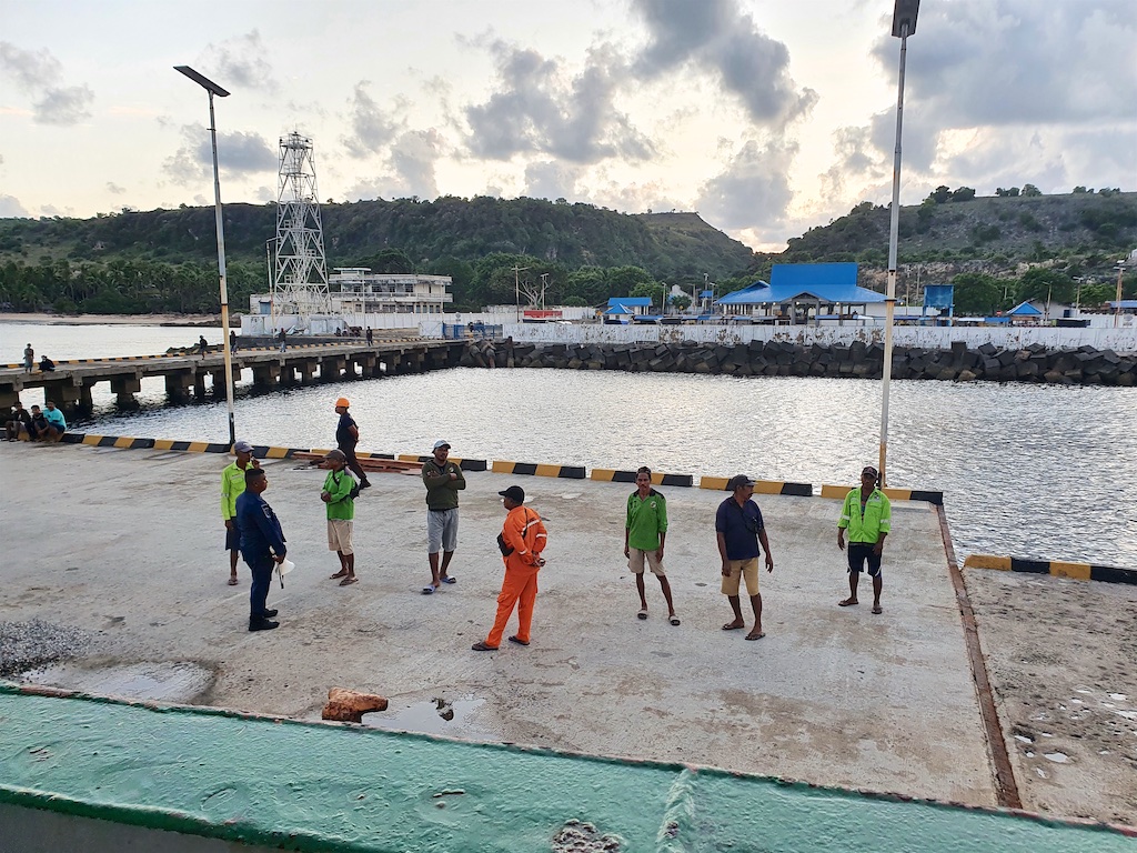 Un deuxième arrêt est prévu à Wetar à Arwala et là impossible de repartir car on est cantonné au port pendant 3 jours car il y a une alerte de grosses vagues et compte tenu de l’état du bateau …il vaut mieux rester au port…
