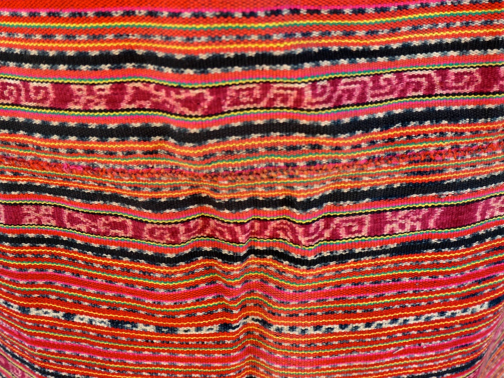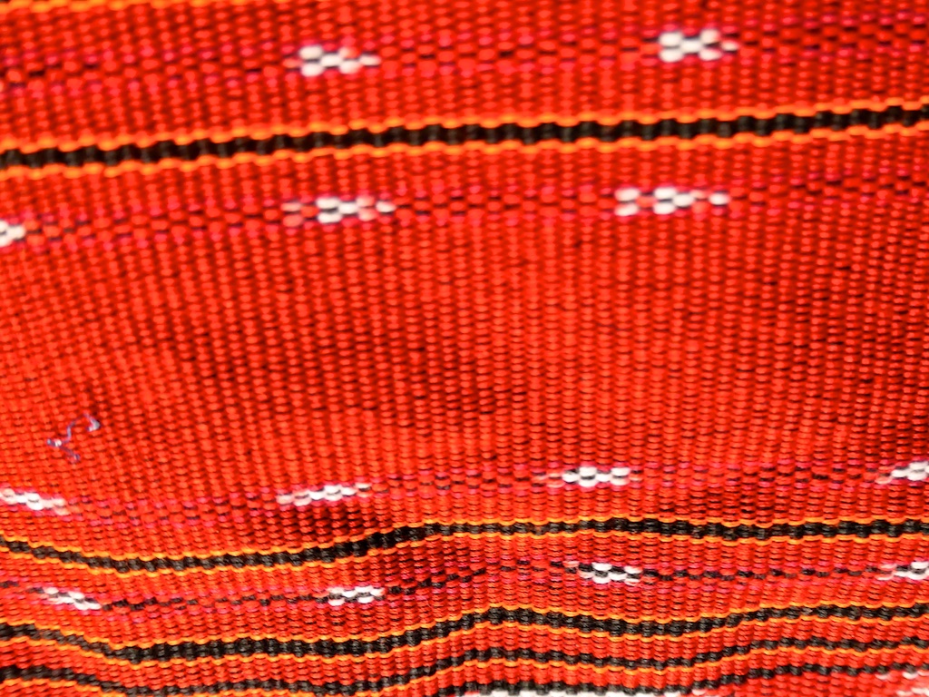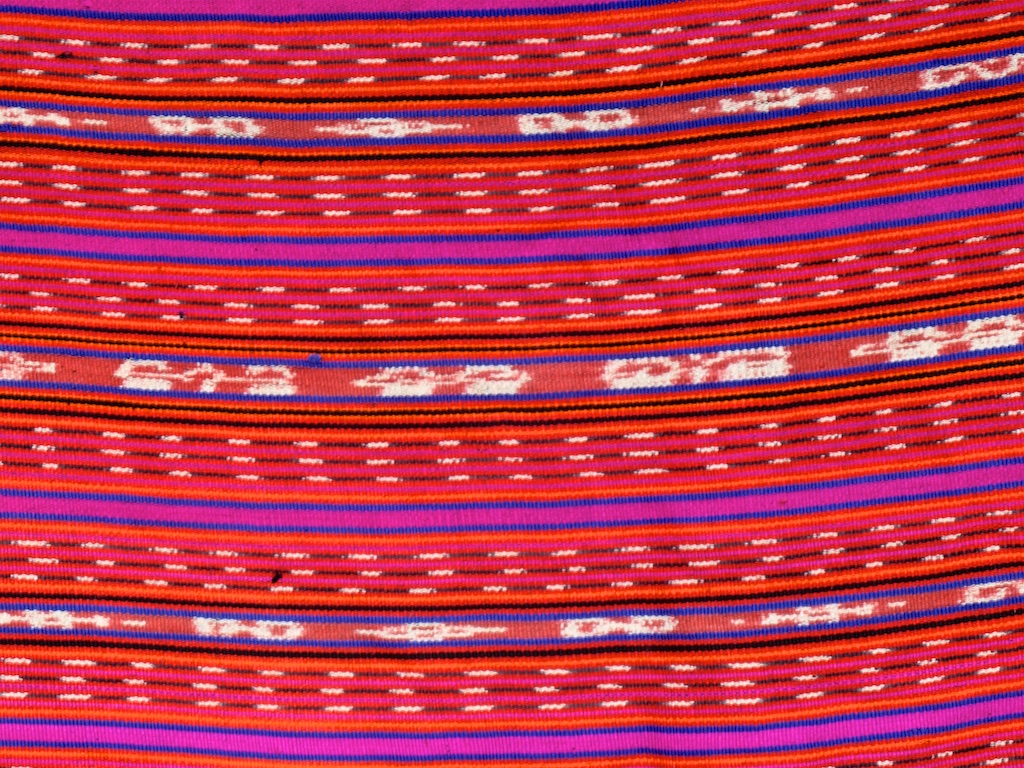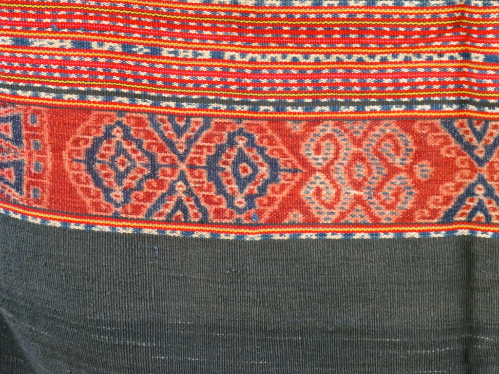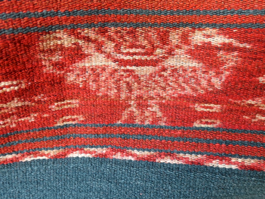 Toujours à Wetar avant le grand départ on trouve dans un des restaurants, un exemple de tissage dit « traditionnel » mais qui ne l’est pas vraiment …le coton est du marché et les couleurs sont synthétiques.