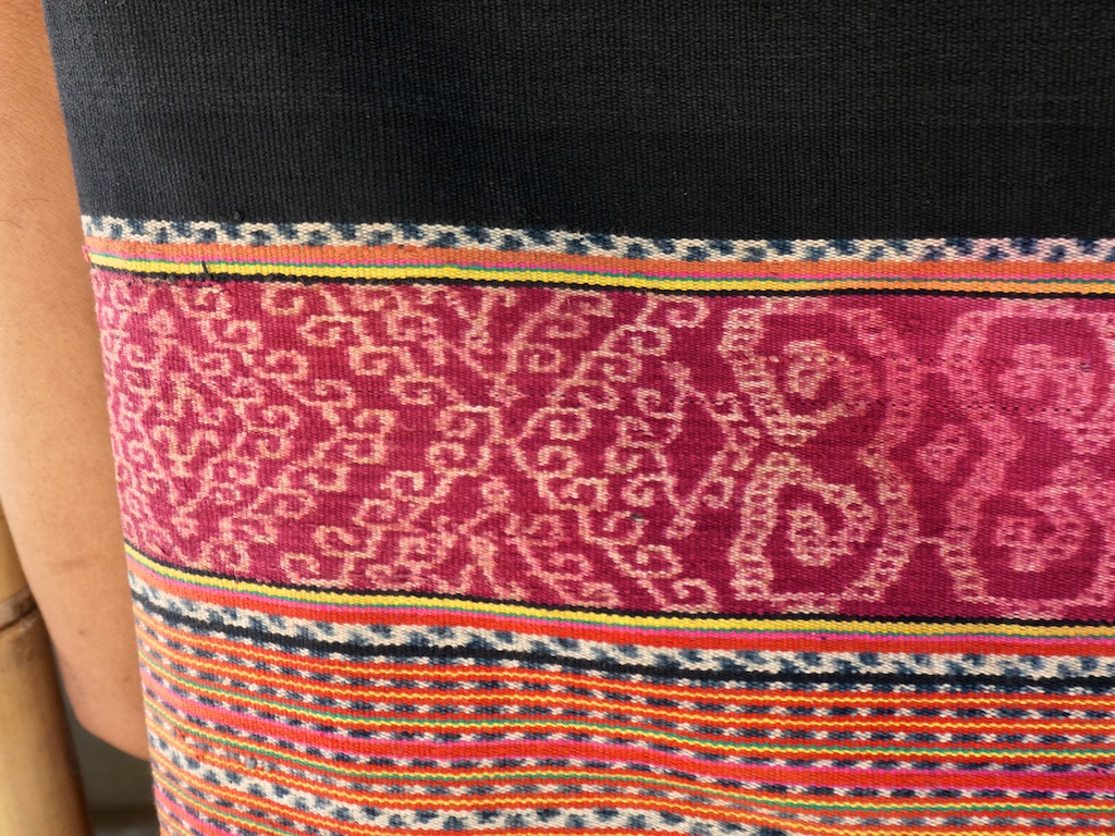 Dans le village suivant de Lebelau , on fait une belle découverte : un sarong kapas …photo è (coton filé à la main, couleurs naturel, tissage main ) La tisserande en veut 10 millions que je n’ai pas …on se contentera des photos !!!