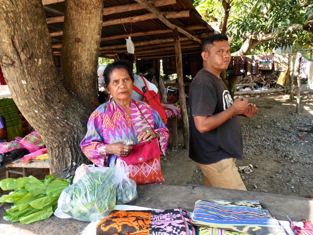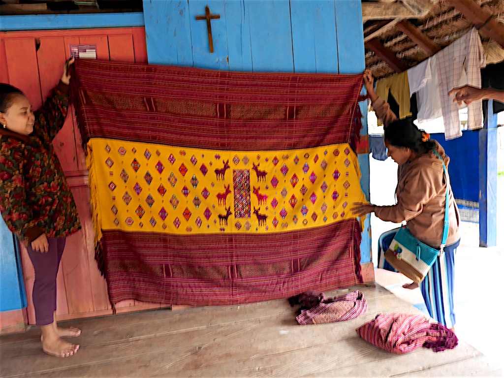 Les habitants de Malaka utilisent également des lopos pour se mettre à l’ombre …on s’arrête dans un premier village qu’i s’appelle Sasita Mean où nous sommes accueillis par 2 tisserandes sympathiques ..Elles nous montent des sarongs de type Malaka qui ne sont pas super intéressants par rapport à ce que nous avons déjà vu !!!