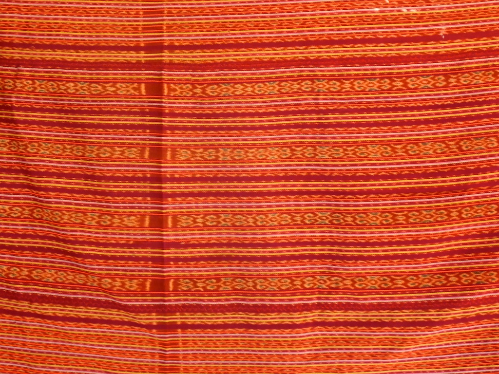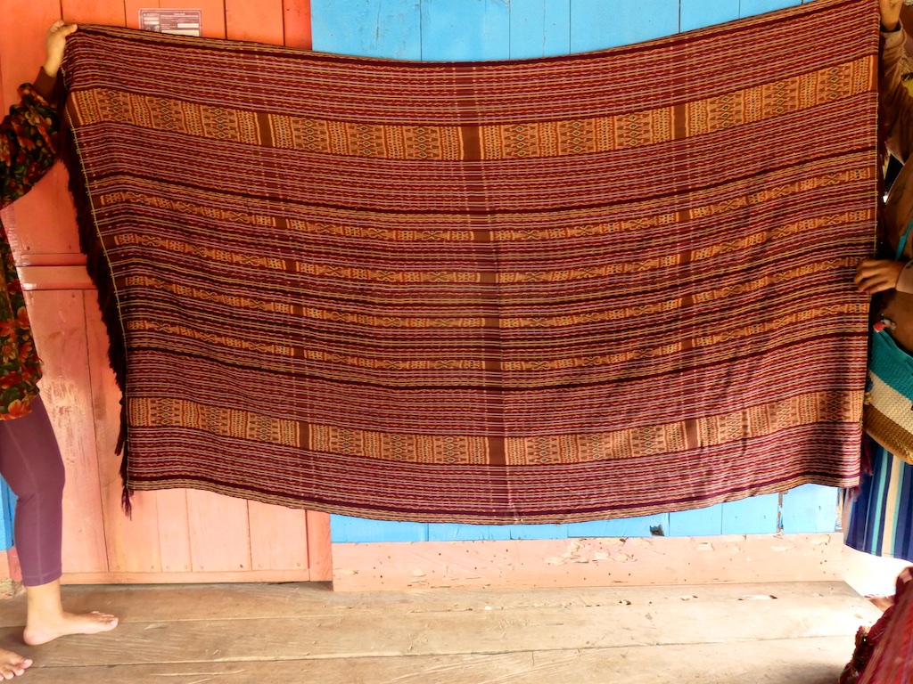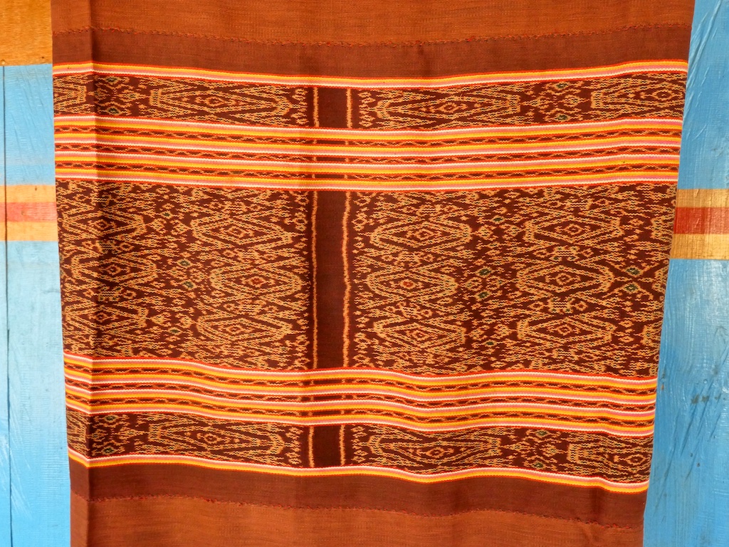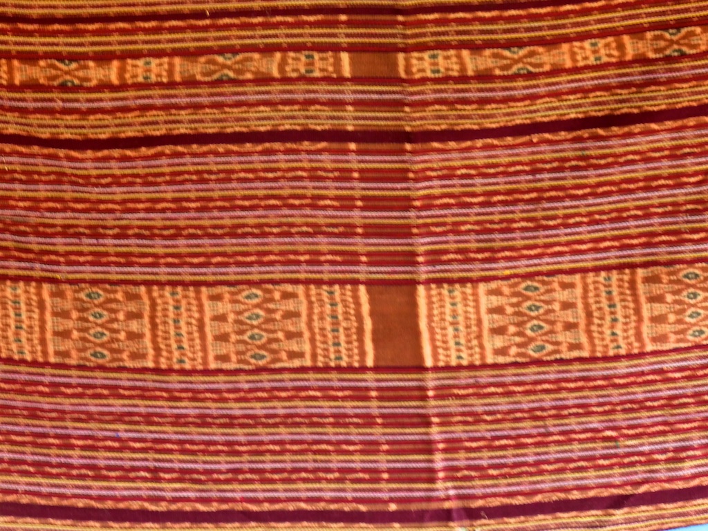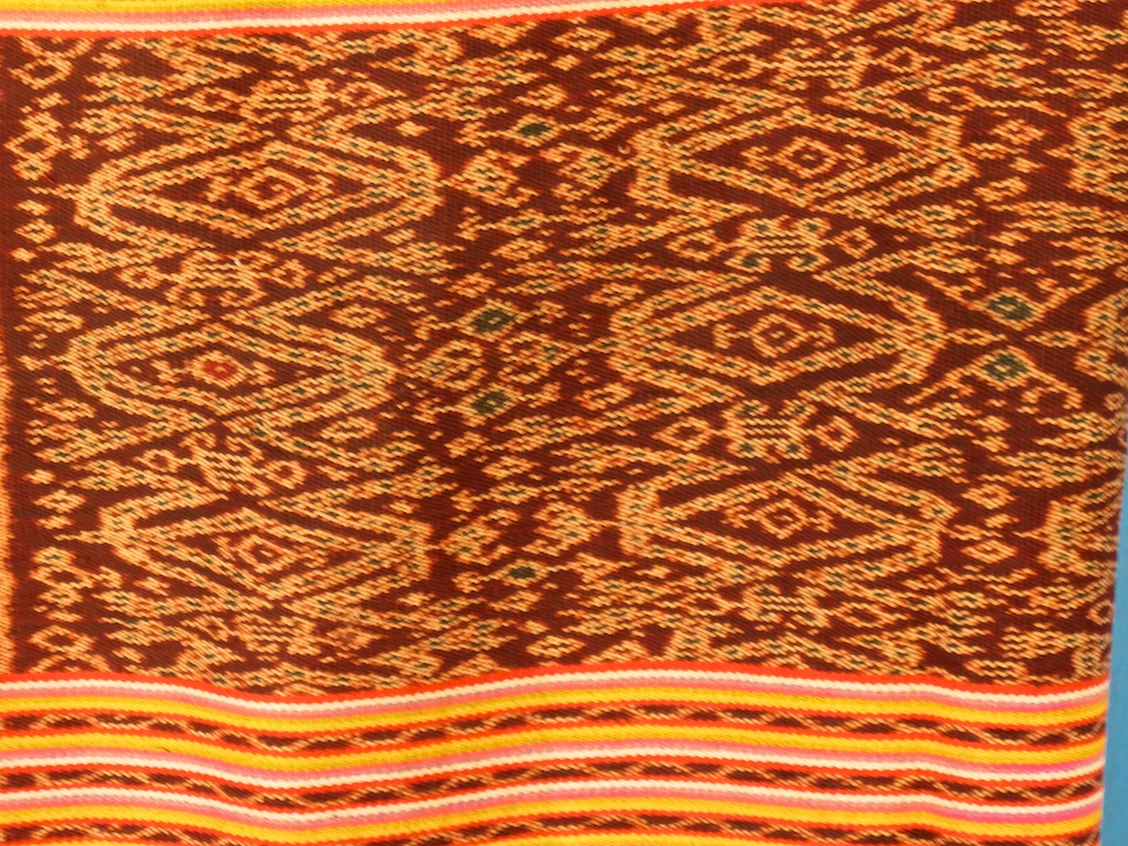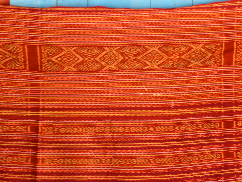 Par rapport à mon précédent passage …certains tissages se sont nettement détériorés comme ce superbe sarong ci dessous dont les motifs buna sont très altérés par les conditions de stockage …
