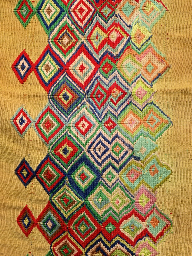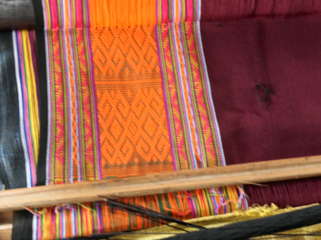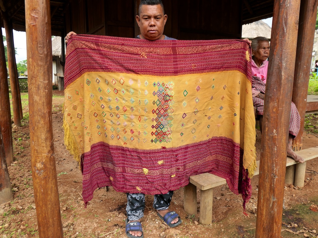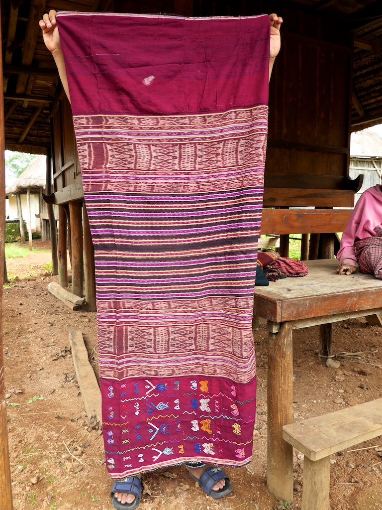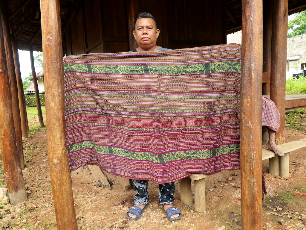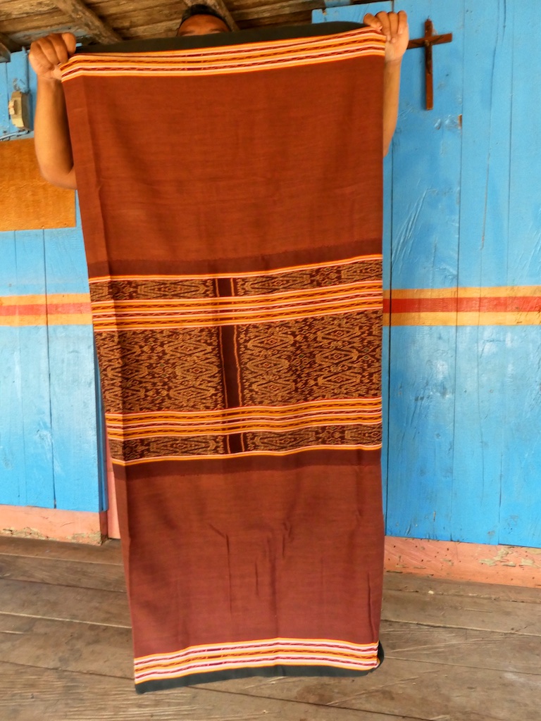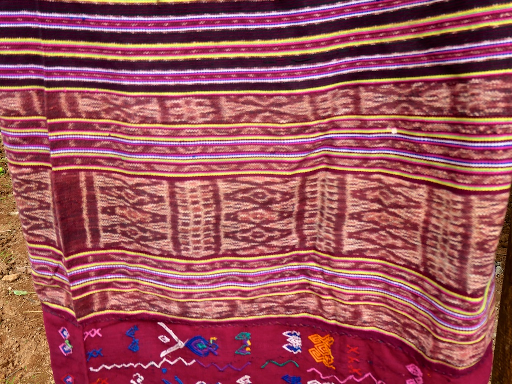 Par rapport à mon précédent passage …certains tissages se sont nettement détériorés comme ce superbe sarong ci dessous dont les motifs buna sont très altérés par les conditions de stockage …