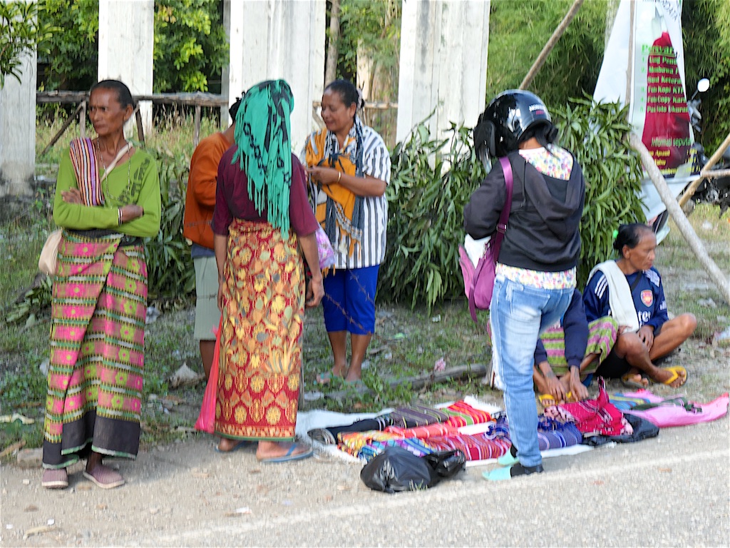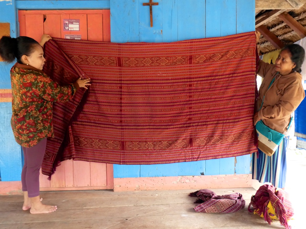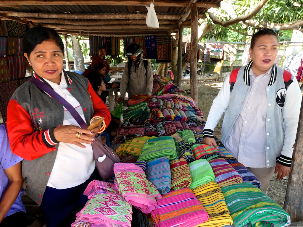 Les habitants de Malaka utilisent également des lopos pour se mettre à l’ombre …on s’arrête dans un premier village qu’i s’appelle Sasita Mean où nous sommes accueillis par 2 tisserandes sympathiques ..Elles nous montent des sarongs de type Malaka qui ne sont pas super intéressants par rapport à ce que nous avons déjà vu !!!