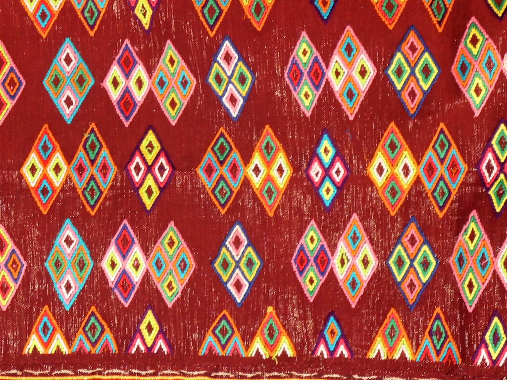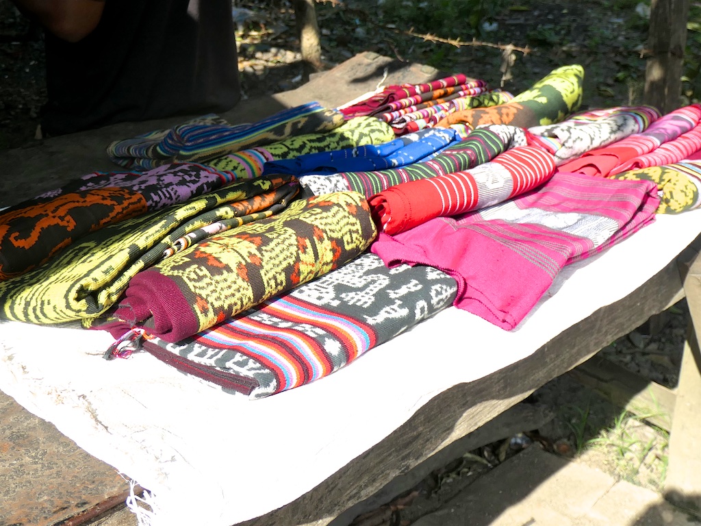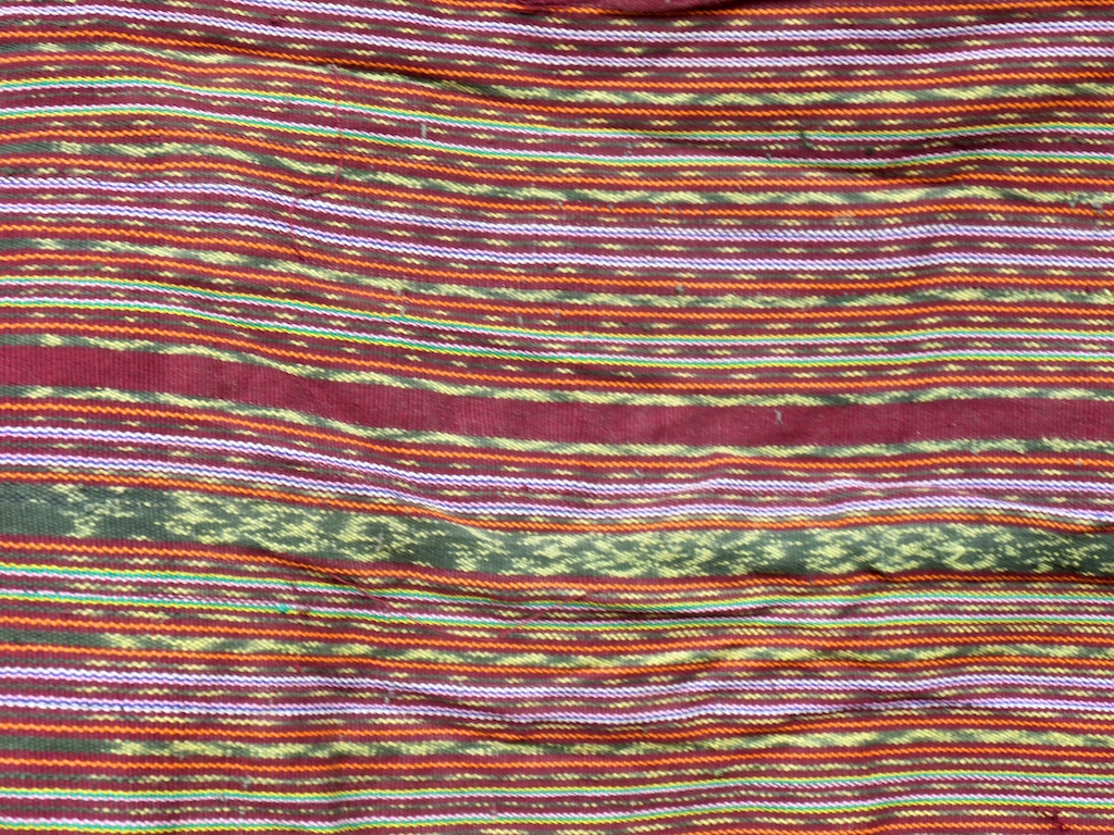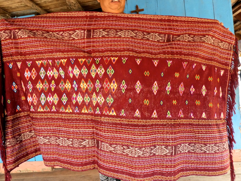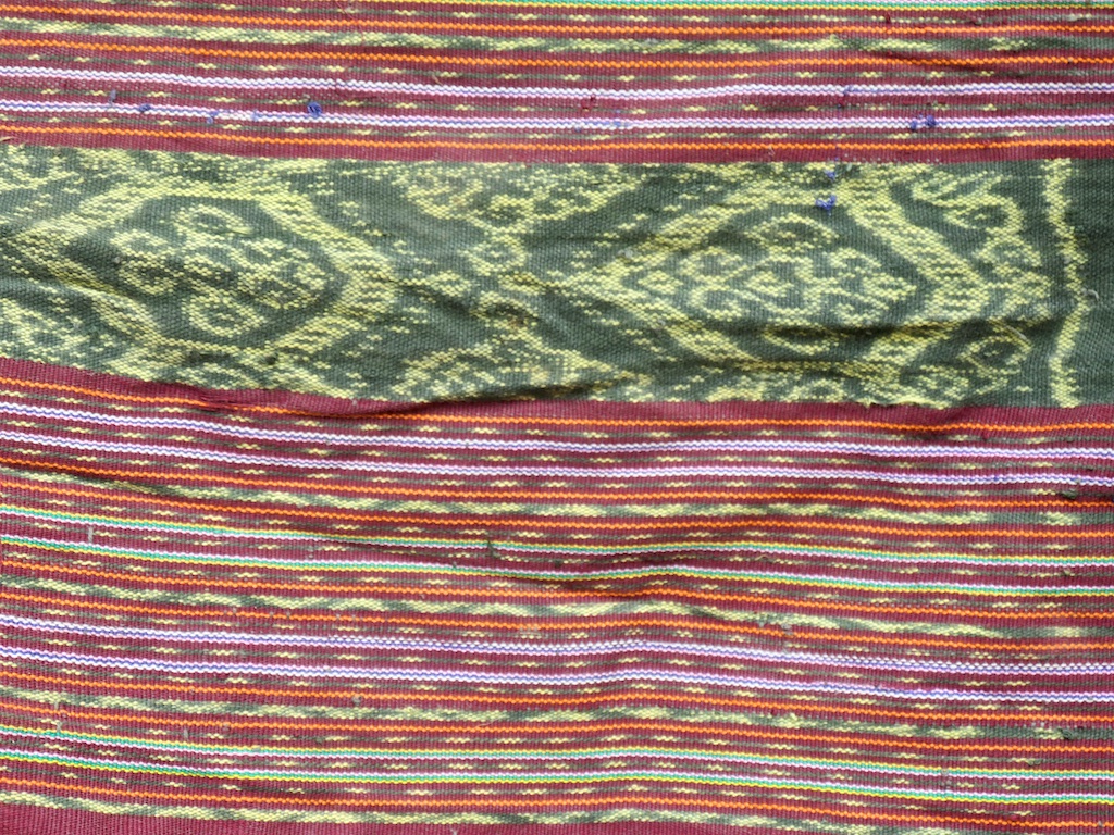 Par rapport à mon précédent passage …certains tissages se sont nettement détériorés comme ce superbe sarong ci dessous dont les motifs buna sont très altérés par les conditions de stockage …