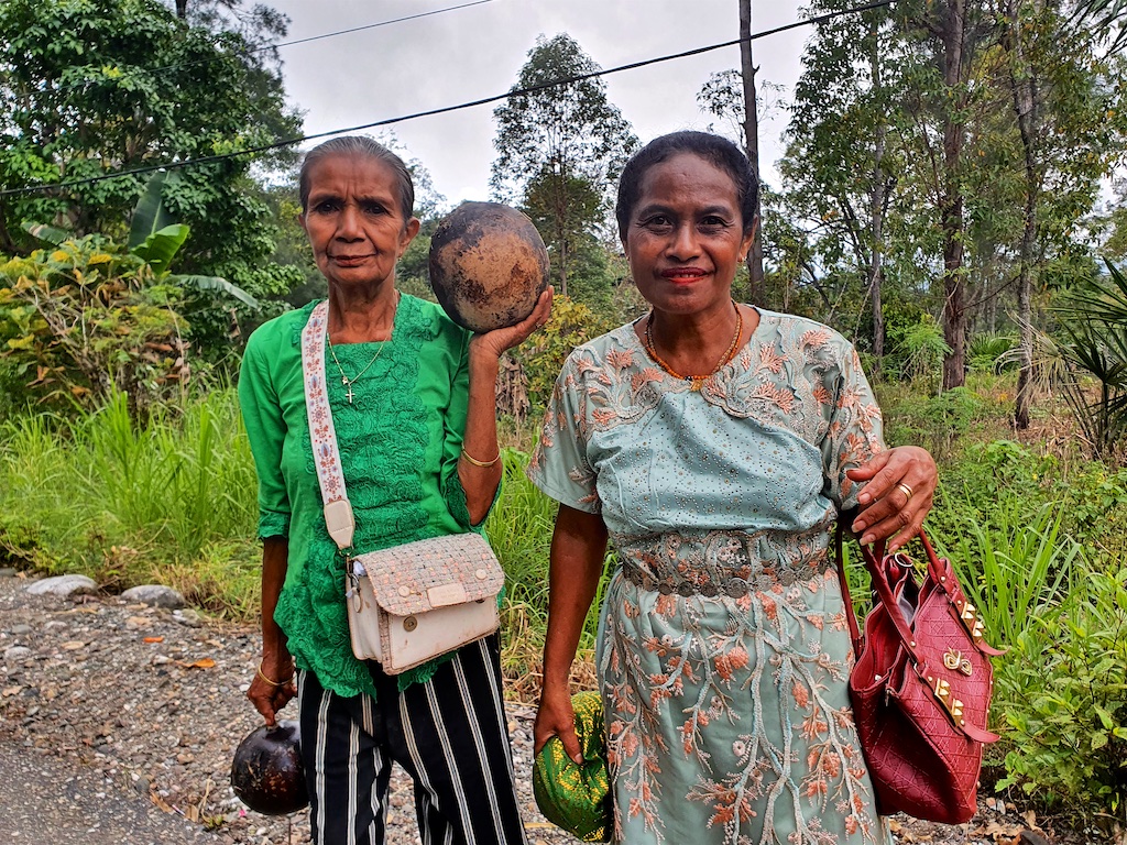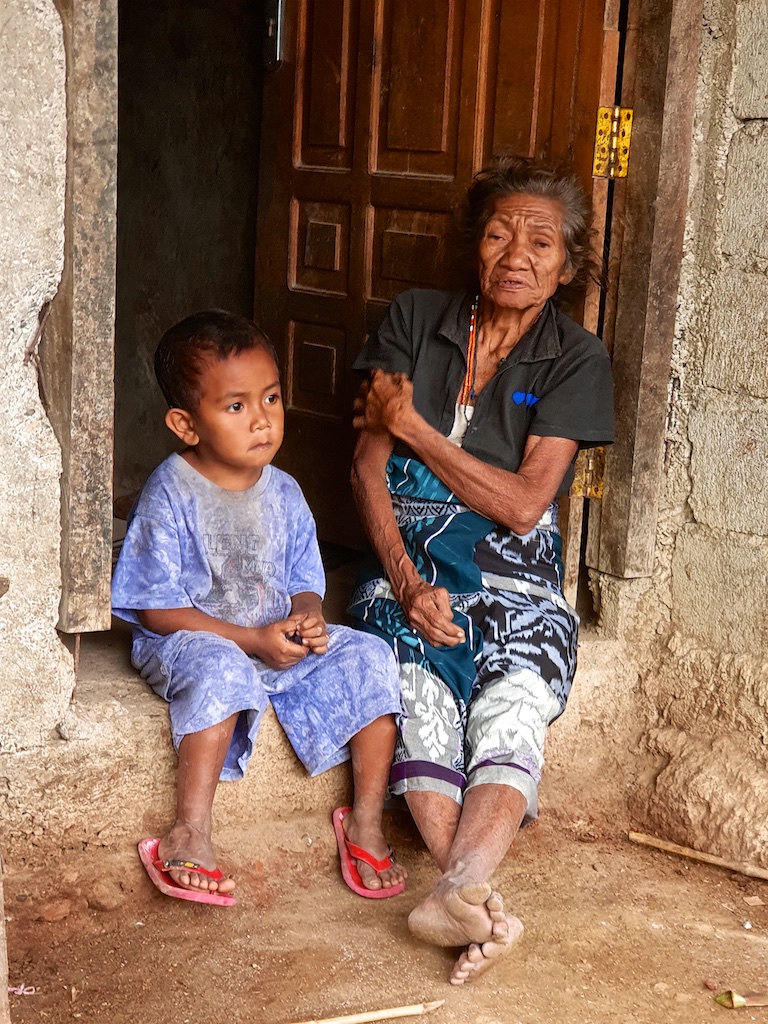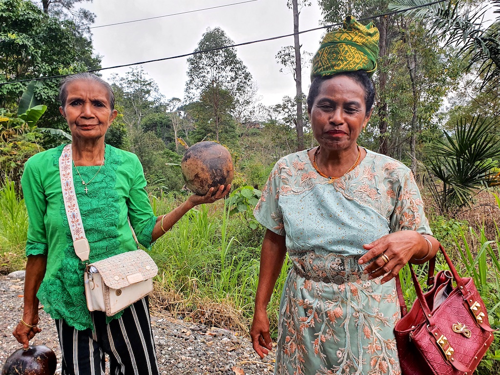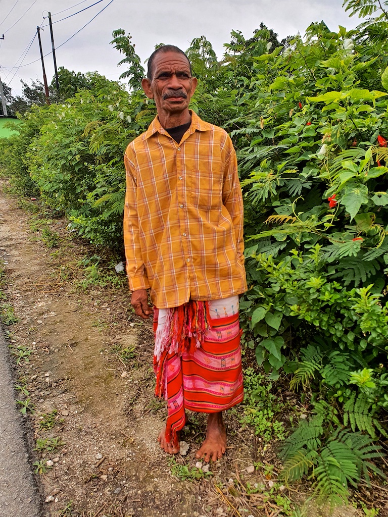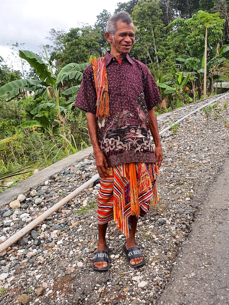 C’est dimanche et sur la route, nous rencontrons plusieurs hommes qui portent encore le selimut traditionnel du pays Mollo.