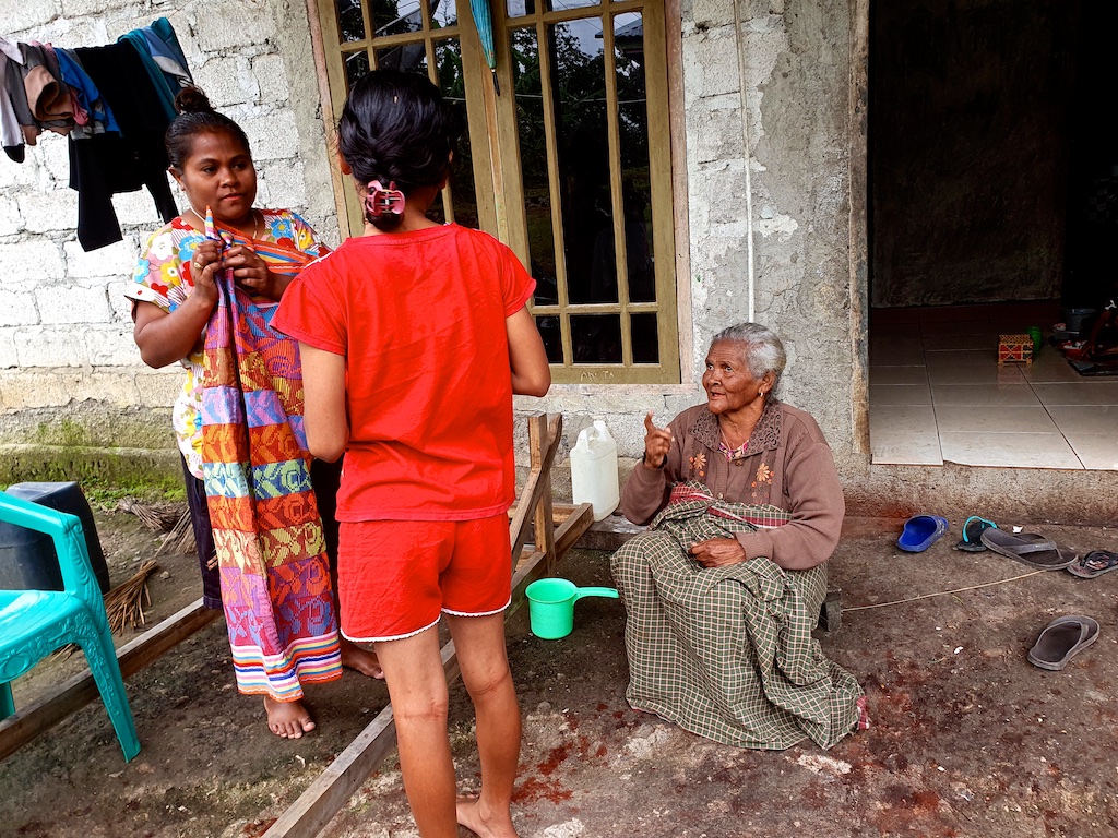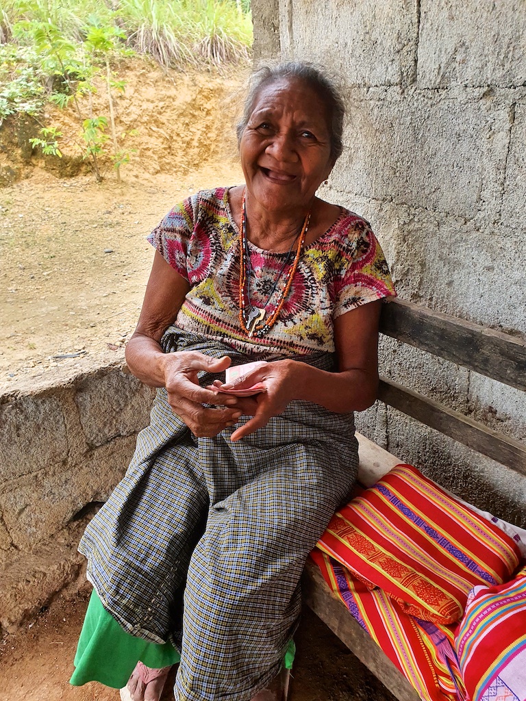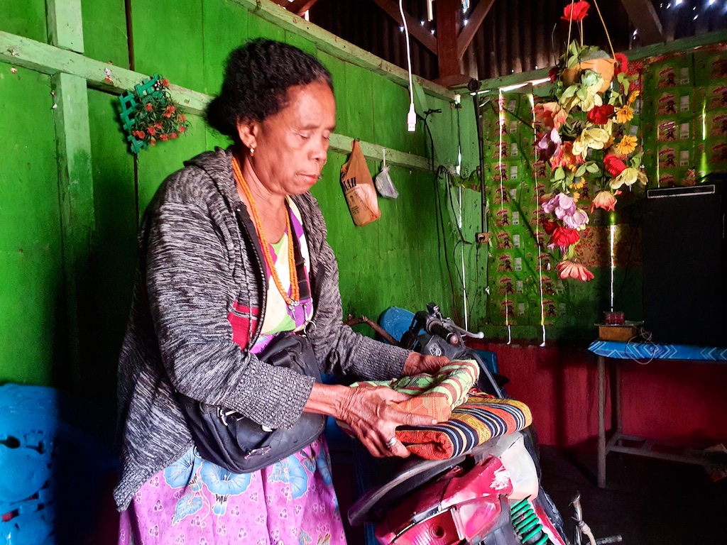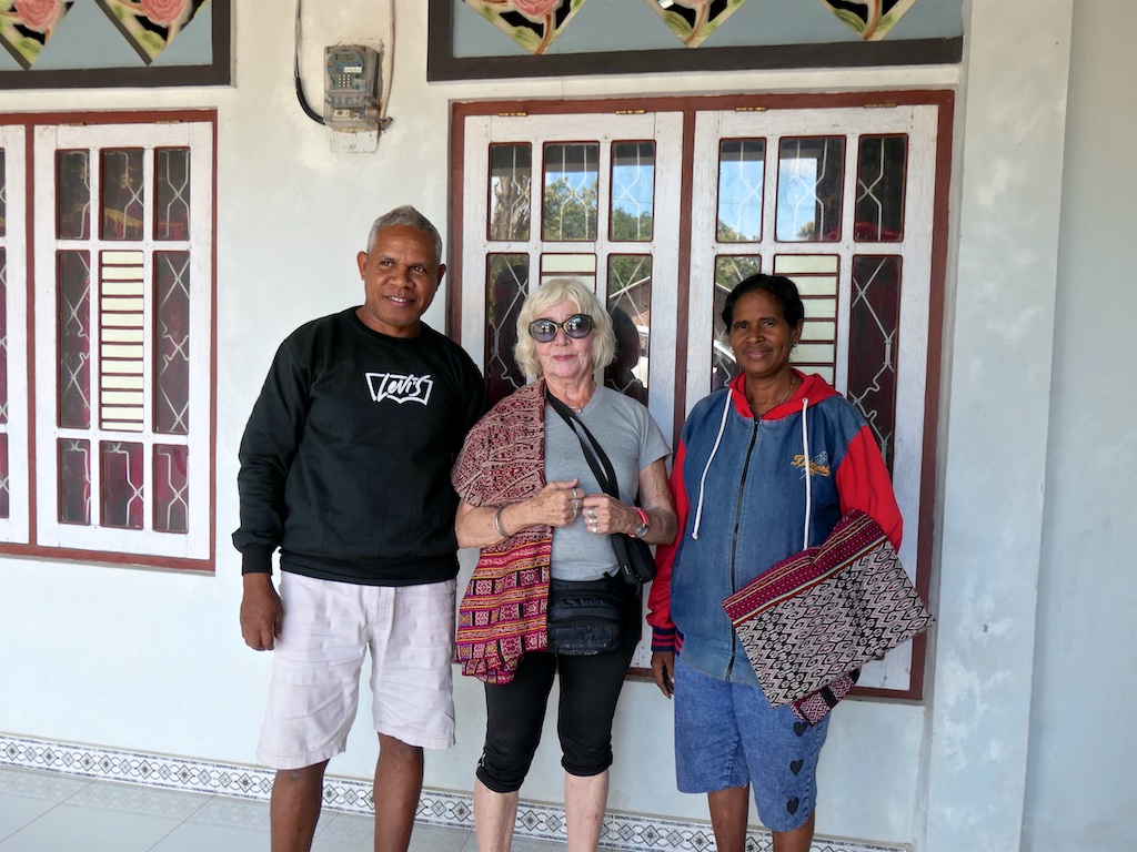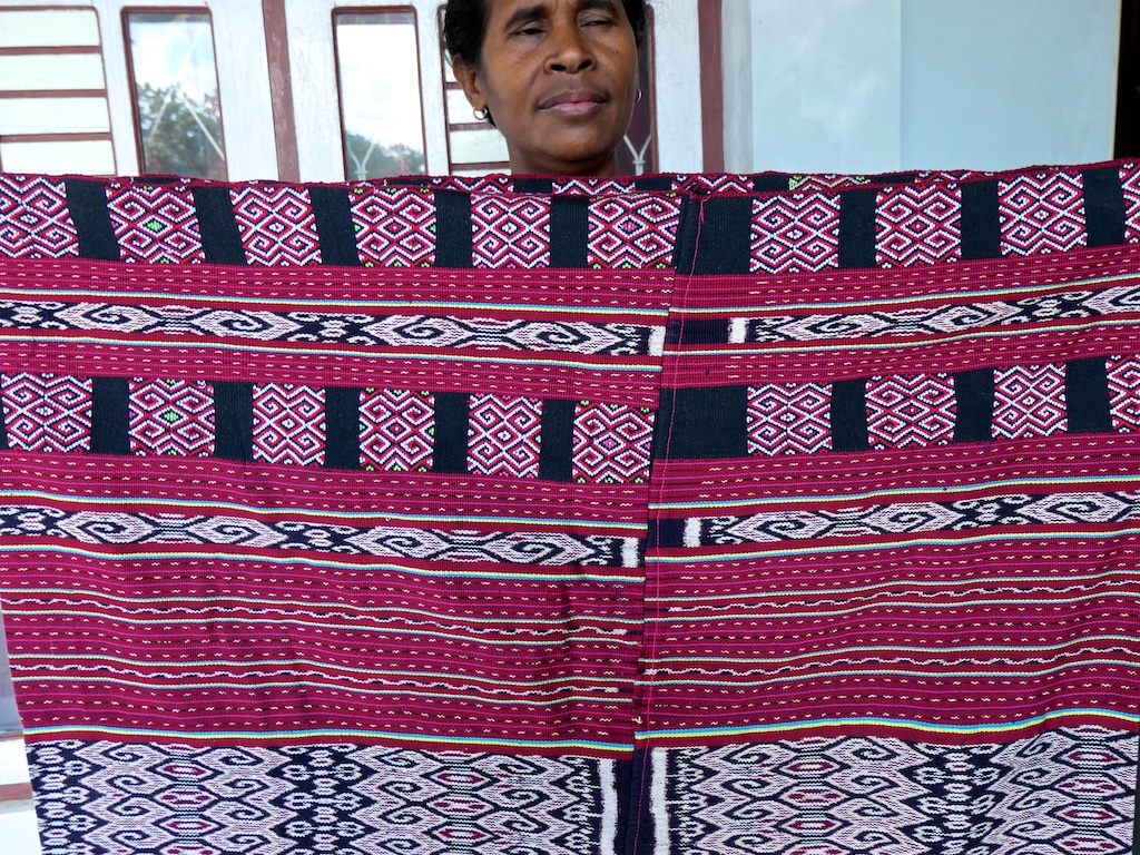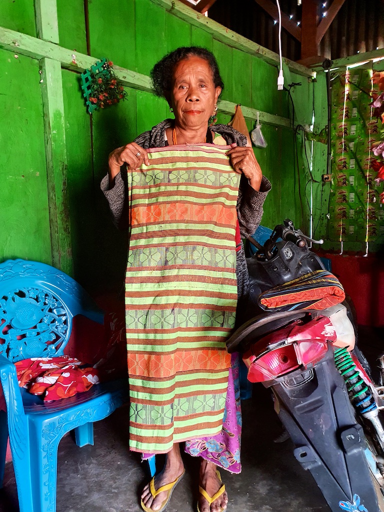 Prochaine étape toujours à Eban avec une vieille dame …visiblement les jeunes ne s’intéressent pas à ce type d’ouvrages..Elle détient un magnifique sarong Buna …mais j’ai presque le même !!!