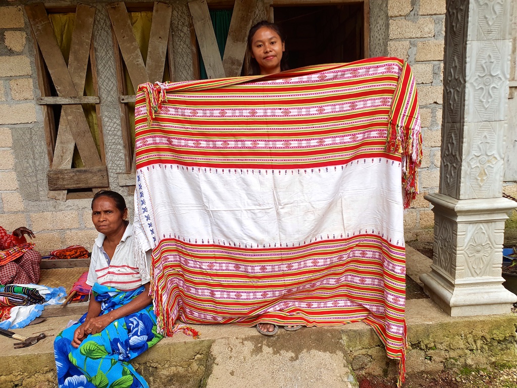 Notre dernier arrêt toujours à Eban est également auprès d’une vieille dame qui tisse des selimut Mollo très classiques de couleur rouge et blanc …