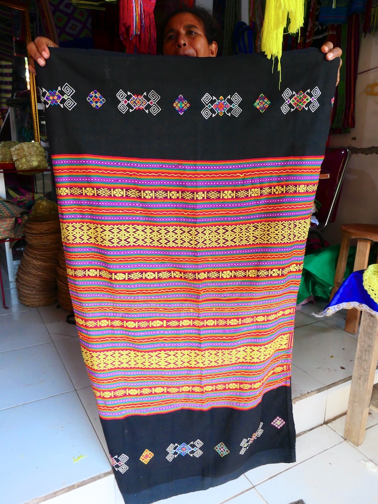 Bien sur la plus belle pièce est le selimut orange Buna que la vieille dame ne veut pas vendre …on laisse le numéro de téléphone de Ridwan au cas où !!!