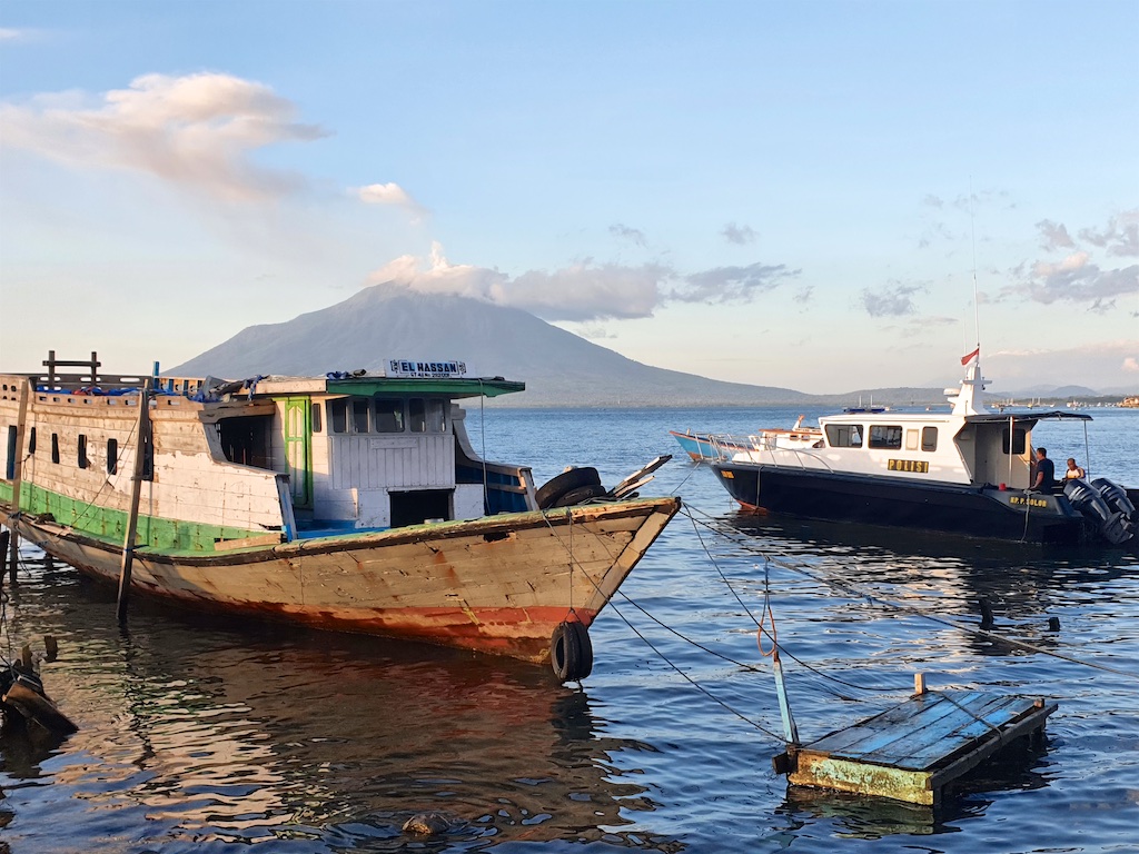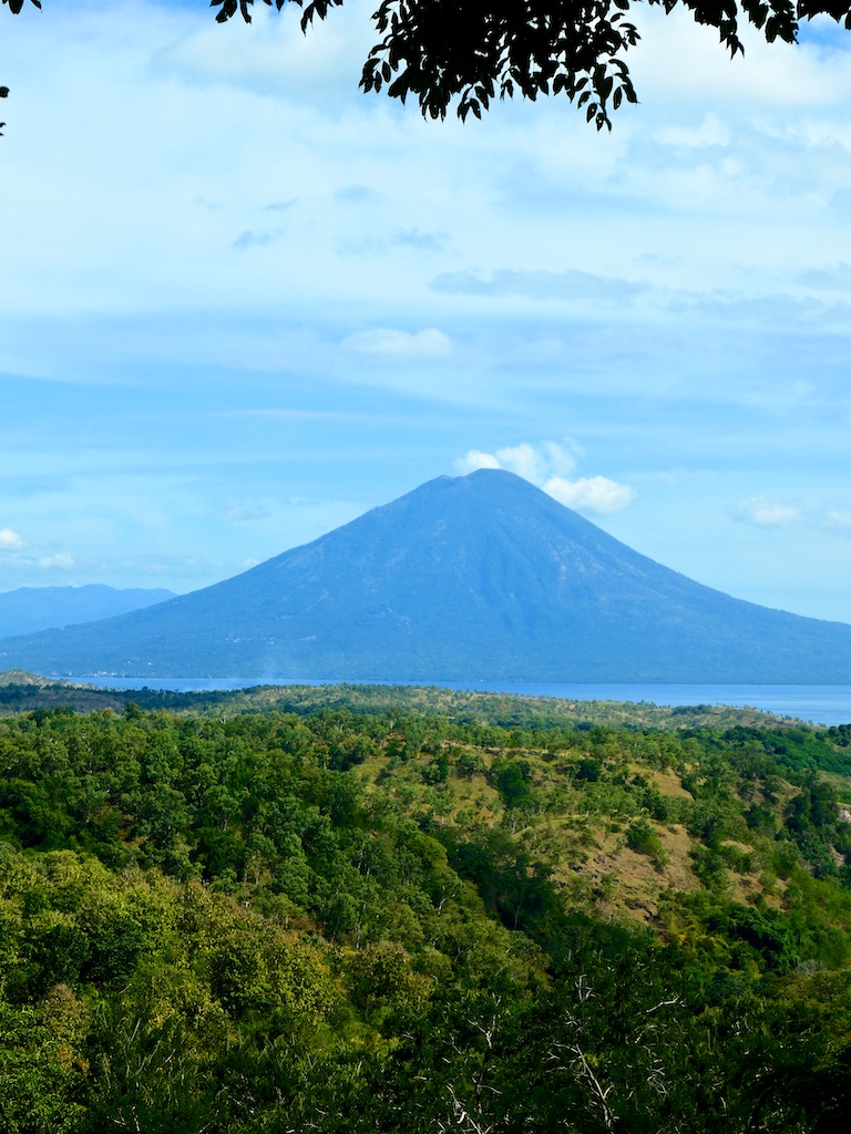 Pas de panique …le volcan présent sur cette photo n’est pas dangereux …il s’agit de Ile Bole …En premier lieu, il est sur une autre ile : Adonara et en plus il est éteint depuis très longtemps …