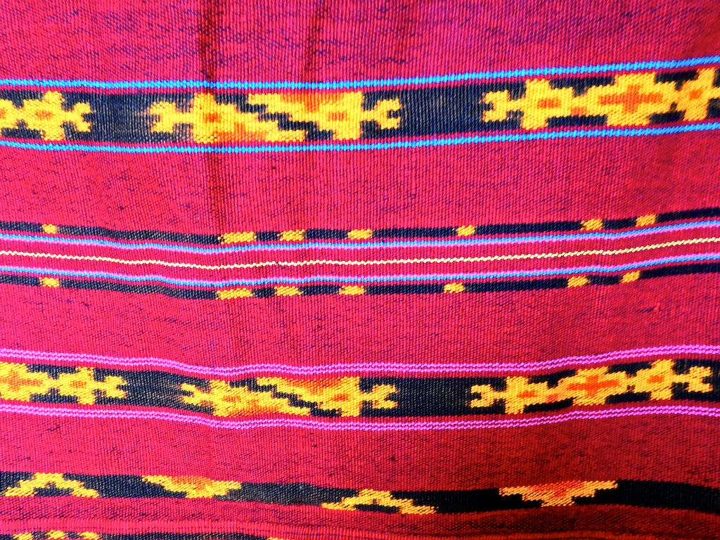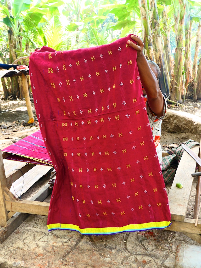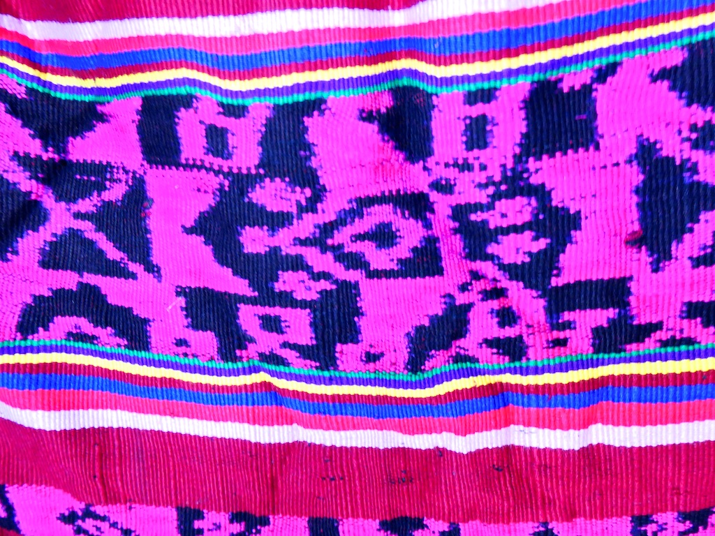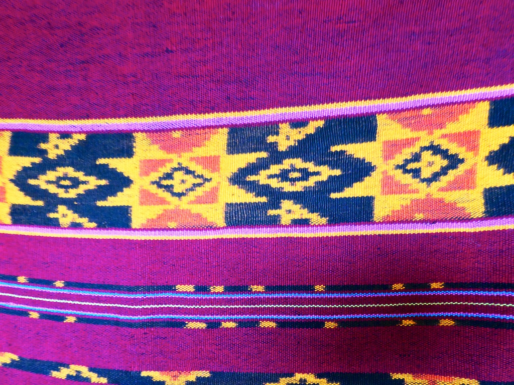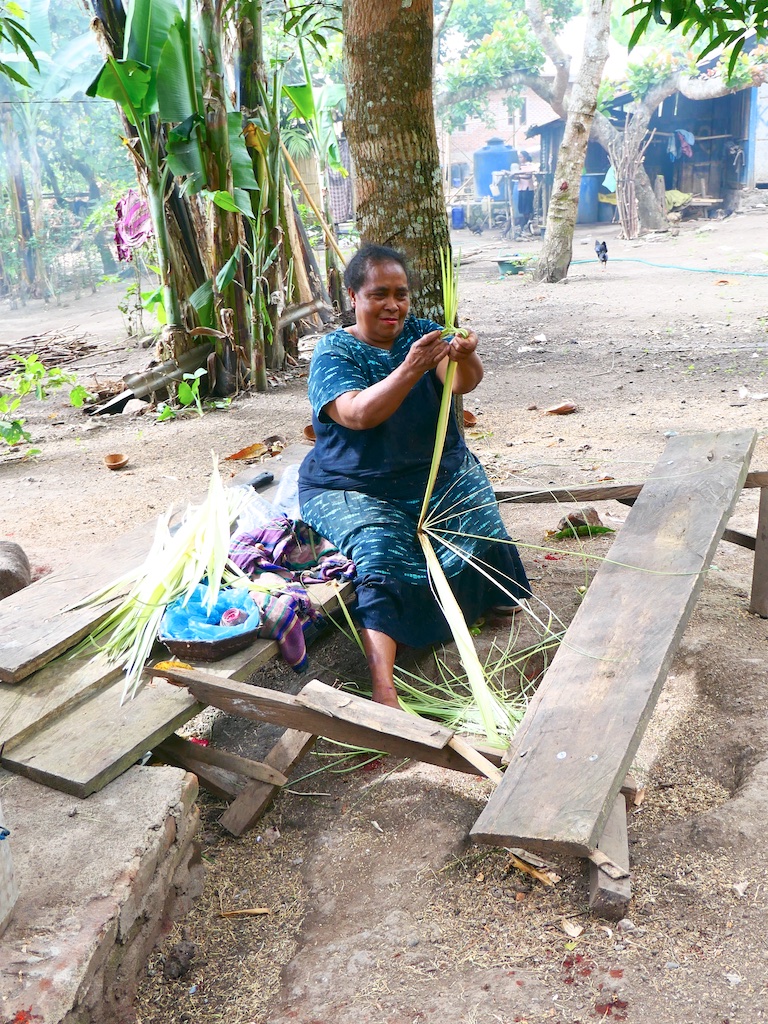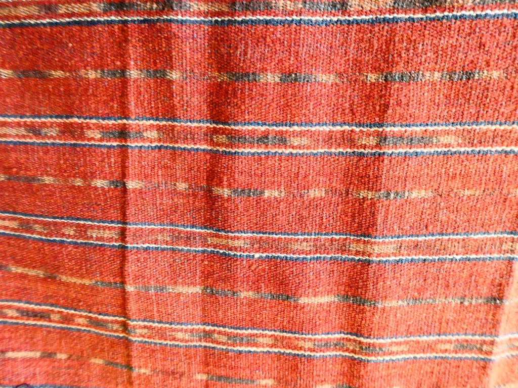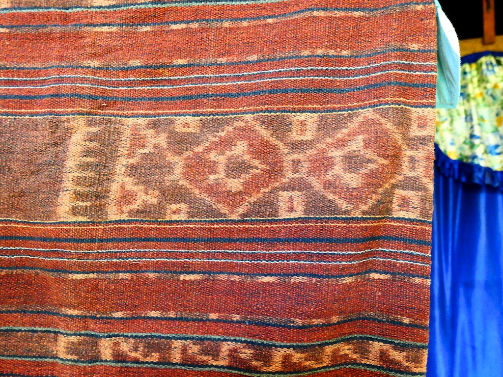 Par contre, au village de Karang Orang, les tisserandes sont nettement plus actives et nous présentent des tissages ikat de meilleure qualité avec la présence de motifs triangulaires figurant des raies manta.