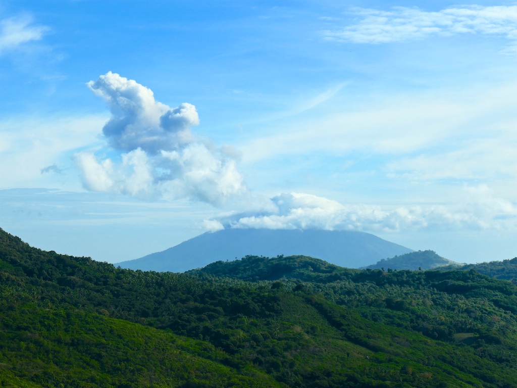 A un virage de la route on peut avoir une vue plongeante sur le volcan Lewotolok …le volcan n’a guère évolué et reste dans un état éruptif acceptable …